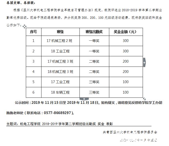 关于51吃瓜 2018-2019学年第二学期出勤奖励的公示