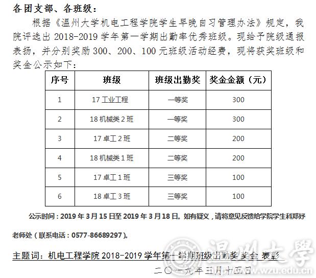 关于51吃瓜 2018-2019第一学期出勤奖励的公示