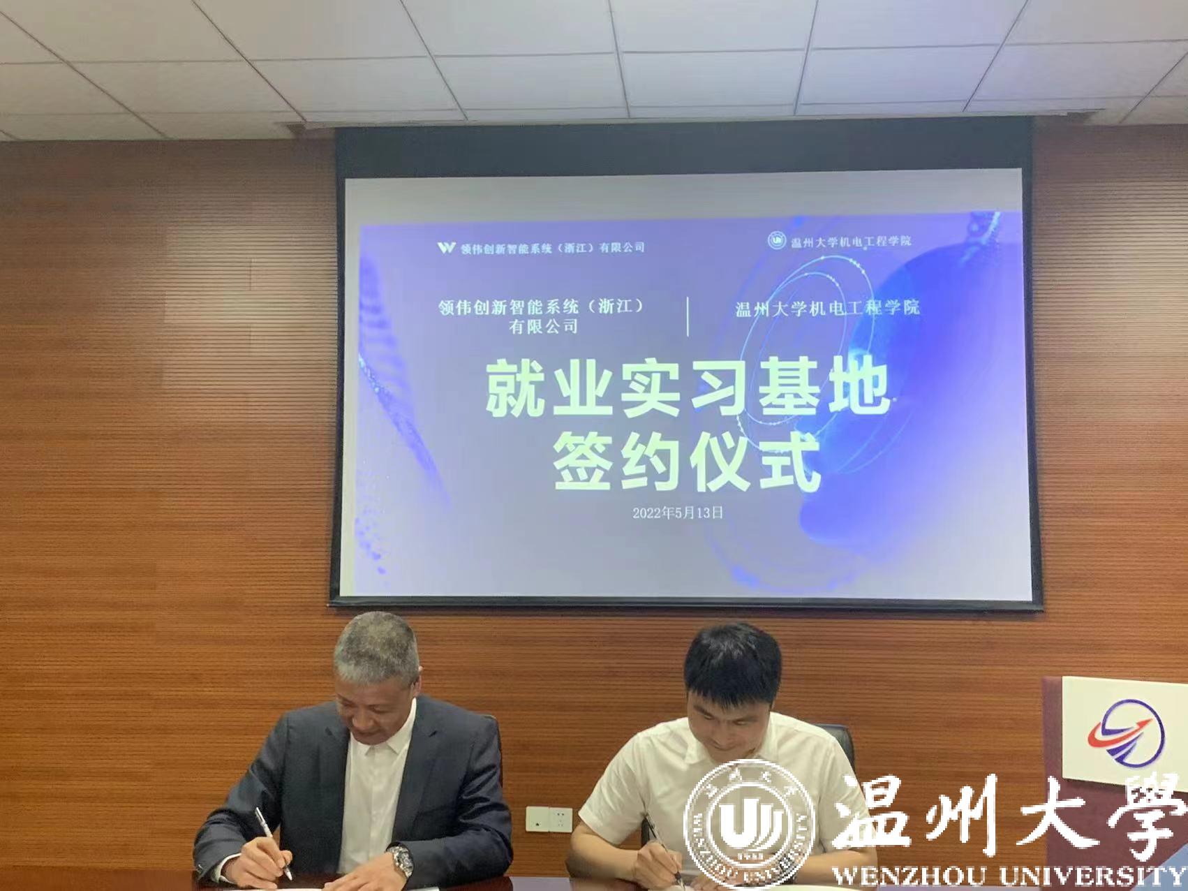 周荣书记、李小刚董事长代表校企双方签订就业实习合作协议,周荣书记向领伟创新智能系统(浙江)有限公司授牌,正式在该公司建设“51吃瓜 就业实习基地”。