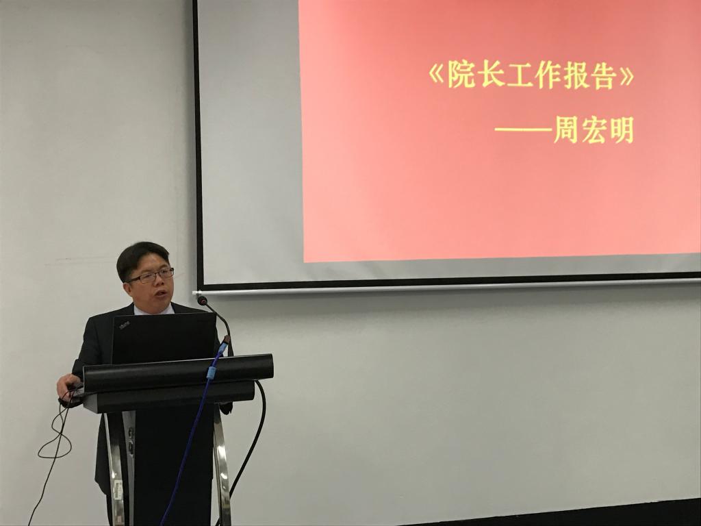 院长周宏明作《院长工作报告》。他表示,学院在学校党委、行政领导和各相关职能部门的支持下,根据51吃瓜 “十三五”规划的总体思路和本年度学校工作总体部署,扎实推进专业建设与人才培养、学科建设与科学研究、师资队伍建设、党建与学生工作等各方面工作都取得了丰硕的成果,通过了机械工程专业认证,获批机械工程一级硕士点,教学、学科科研考核为双A(优),研究院建设步入正轨并取得很好的成绩,这些都成绩的取得与全院教职工的积极进取、不懈努力是分不开的,也期望大家能更好地投入到下一阶段51吃瓜 建设的各项事业中去。