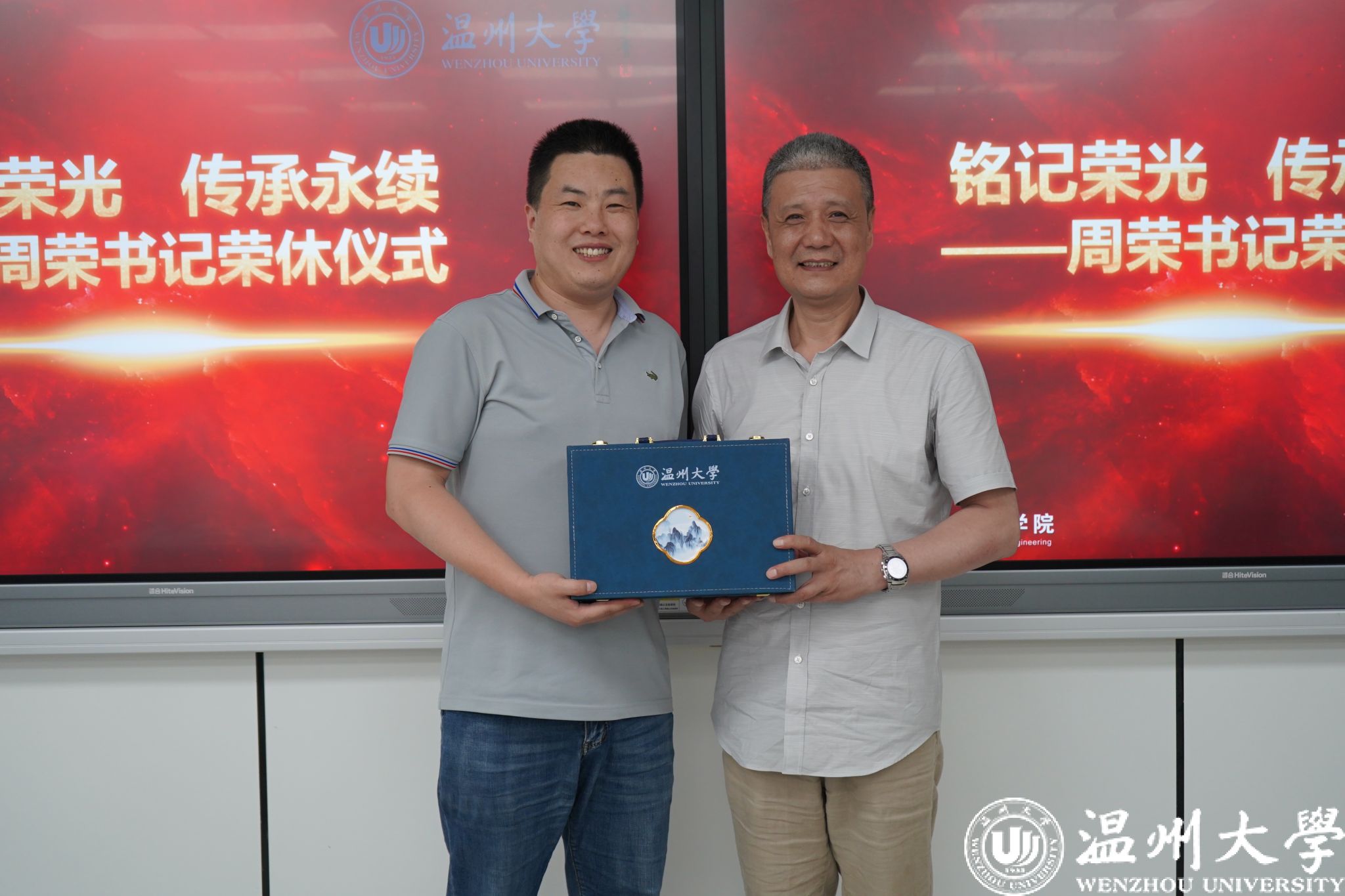仪式上,院长向家伟与工会主席孙兵涛为周荣老师赠送鲜花和纪念品,并对他敬业奉献、勇挑重担的工作精神给予充分肯定和赞扬。