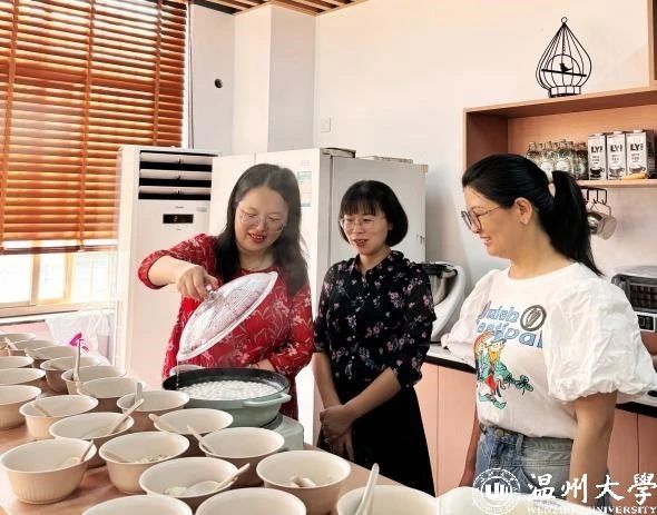 活动现场,工会及妇联老师和志愿者们认真准备食材,拣桂花、煮圆子、放酒酿……香甜可口的桂花酒酿圆子深受在场女性教职工和同学们的喜爱。