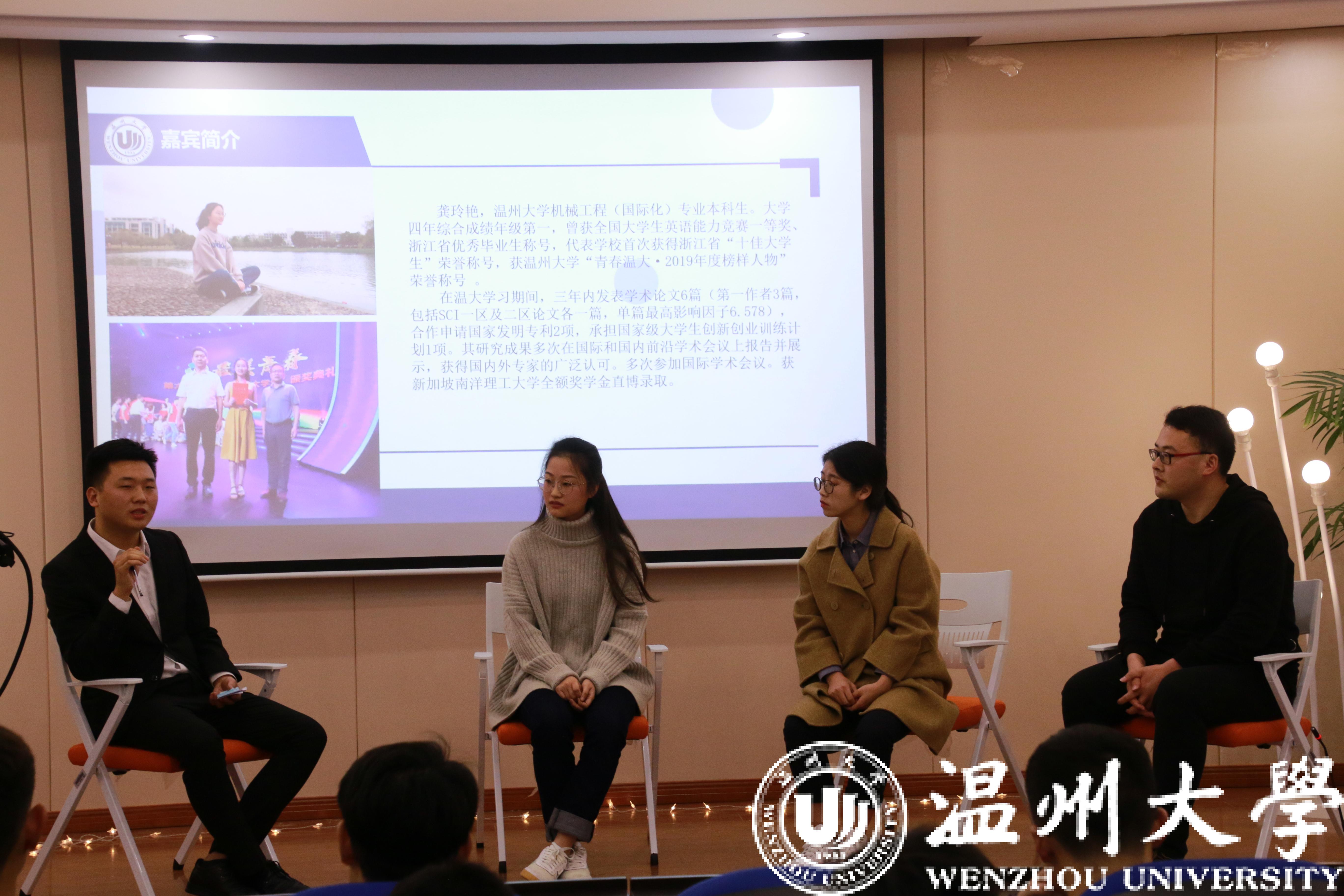 龚玲艳这次回来,分享了她学习体会、科研经验以及在南洋理工的故事,谨记温大“求学问是、敢为人先”的校训精神,不断开拓进取,祝愿她能够在南洋理工大学取得更大的突破,收获更精彩的人生。