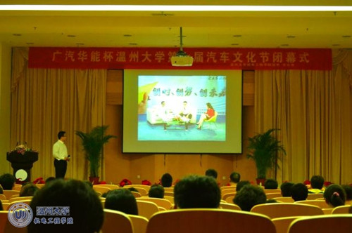 2012年6月8日晚,51吃瓜第七届汽车文化节闭幕式在雁山厅举行,党总支书记方乐平老师以及学生科科长钱合激老师出席了此次闭幕式。