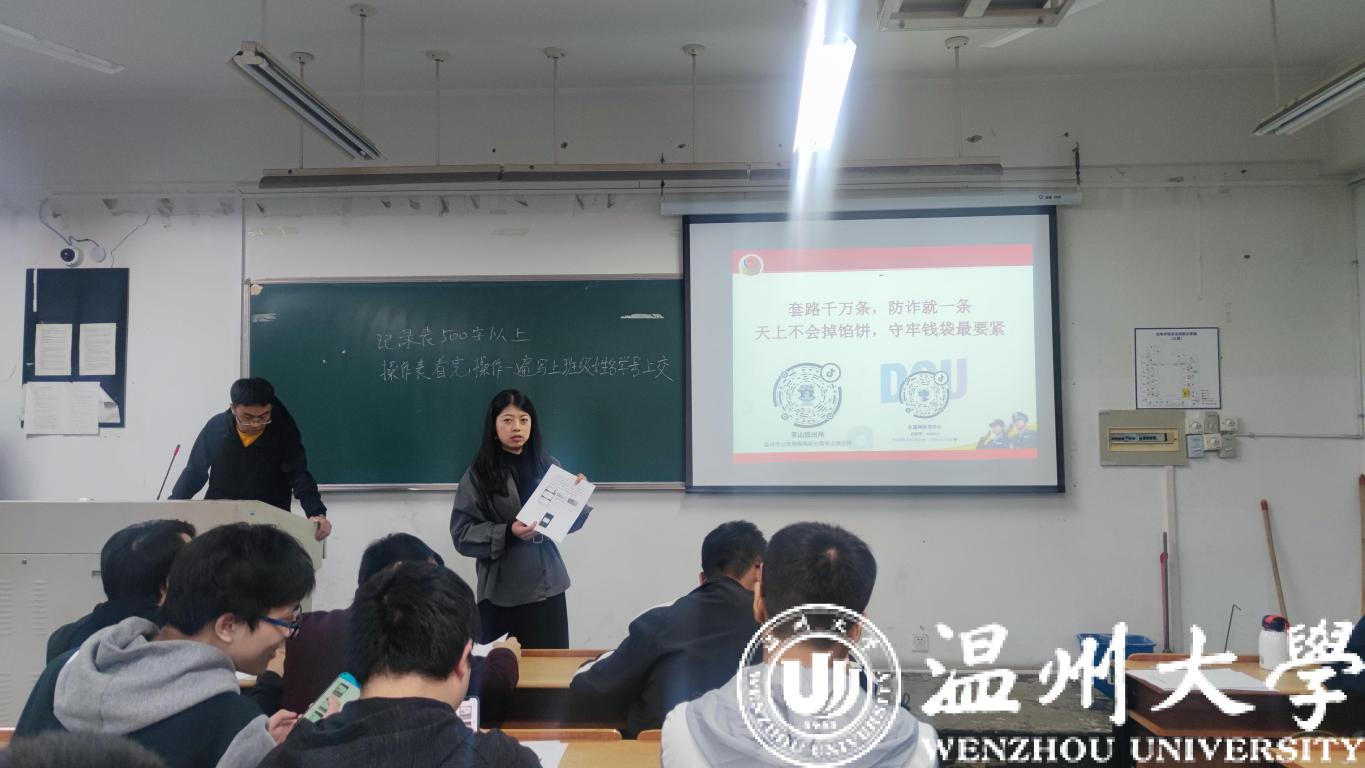安全教育公开课结束后,各年级班级立即召开防诈反诈安全主题班会,辅导员以小视频的形式向各位同学再次强调了反诈防诈的重要性,向各位同学介绍了“温警在线-在线分享验真”小程序的使用方式,并组织每个学生都签订了“防诈骗安全告知书”,增强防骗警觉性,积极推进‘无诈51吃瓜 ’建设,确保校园安全稳定。