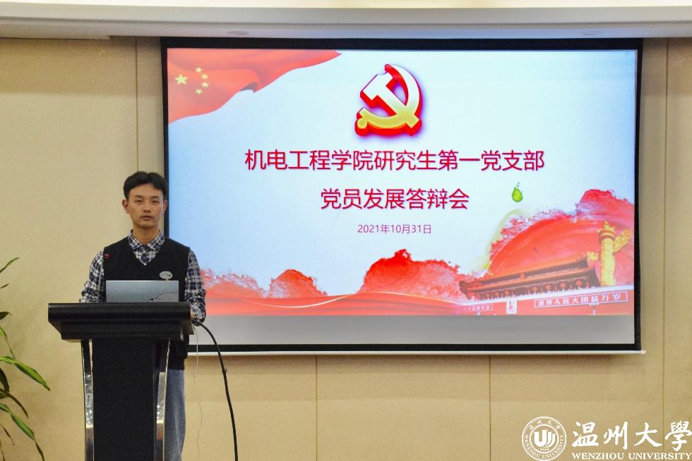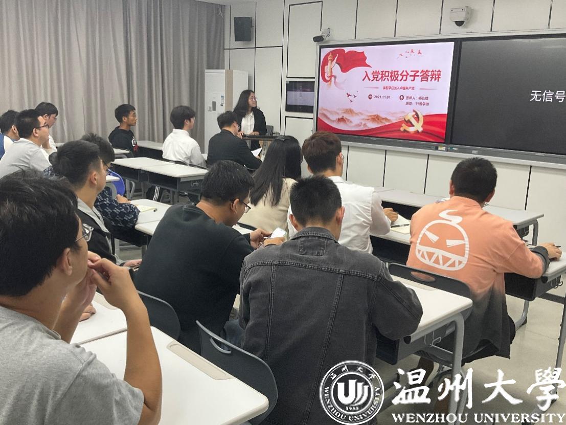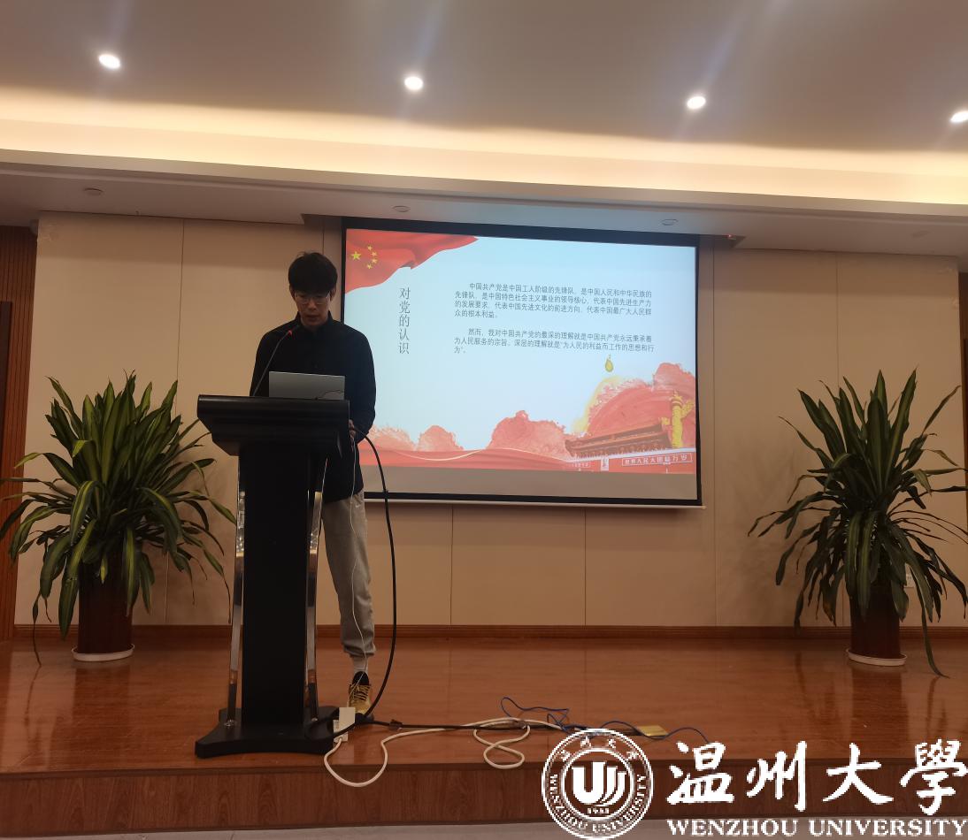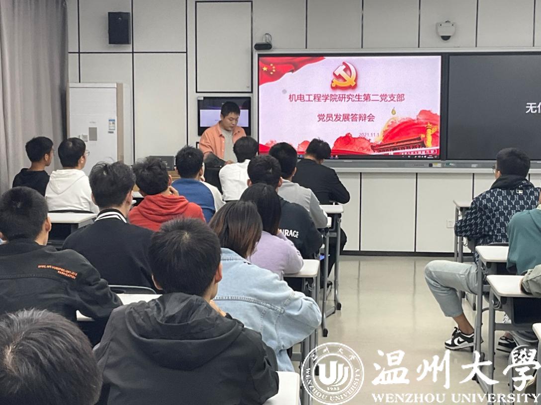 在本次答辩会中,研究生第一支部林晋豪、黄鹏奕、张东相、吴林健、潘俊珂、倪锦豪6位同学参与答辩;研究生第二支部杨仙娥、陈建龙、王铁成、魏帅康、王辉5位同学参与答辩。他们分别主要从对党的认识、对党史的了解、个人学习工作及社会实践等方面进行汇报。随后,在座党员对答辩人进行党史党章、习近平新时代中国特色社会主义思想等理论知识的提问。