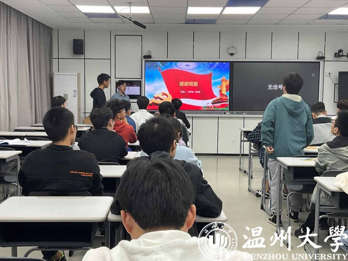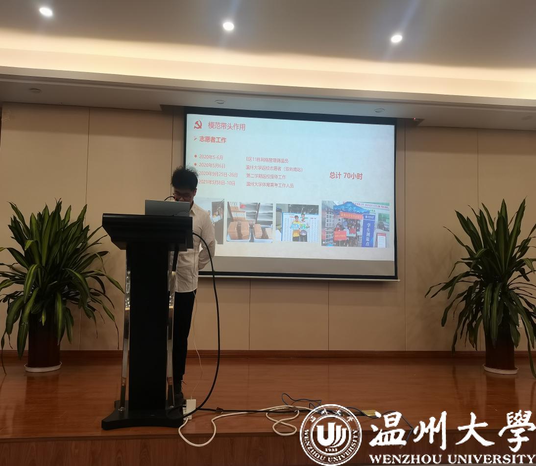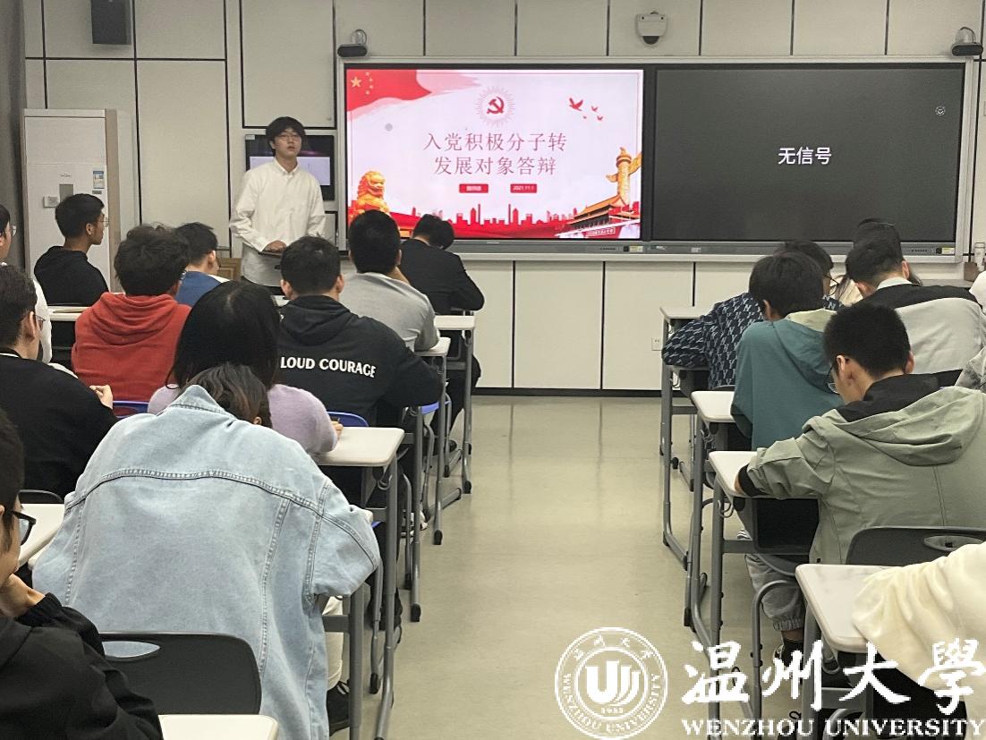 在本次答辩会中,研究生第一支部林晋豪、黄鹏奕、张东相、吴林健、潘俊珂、倪锦豪6位同学参与答辩;研究生第二支部杨仙娥、陈建龙、王铁成、魏帅康、王辉5位同学参与答辩。他们分别主要从对党的认识、对党史的了解、个人学习工作及社会实践等方面进行汇报。随后,在座党员对答辩人进行党史党章、习近平新时代中国特色社会主义思想等理论知识的提问。