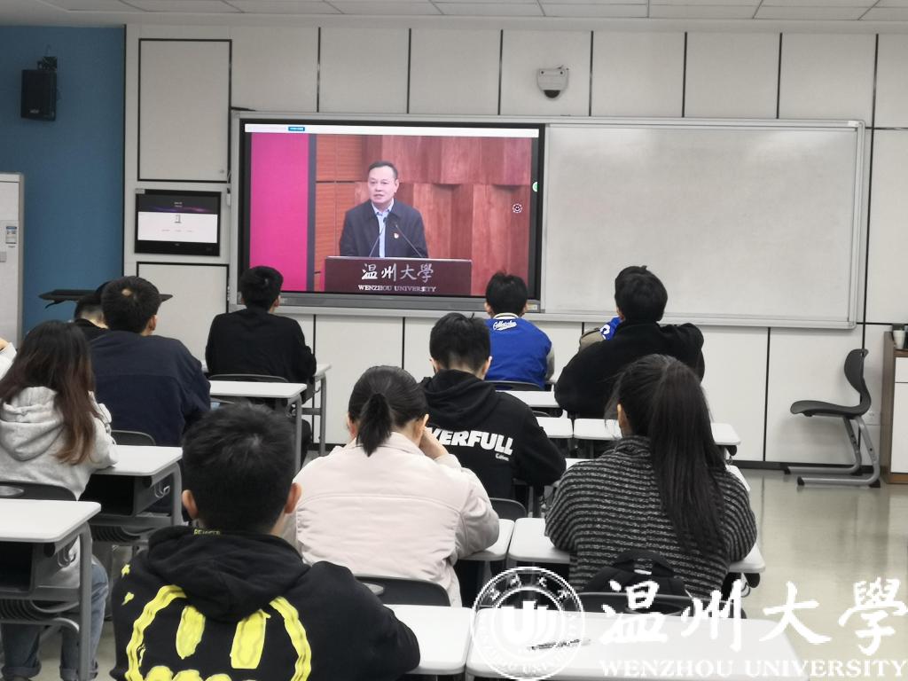 2021年11月17日下午,51吃瓜组织观看了“‘永远跟党走’温州市党史学习教育主题报告会(51吃瓜 专场)暨党的十九届六中全会精神宣讲会”。51吃瓜 全体学生党员,入党积极分子参加并学习。