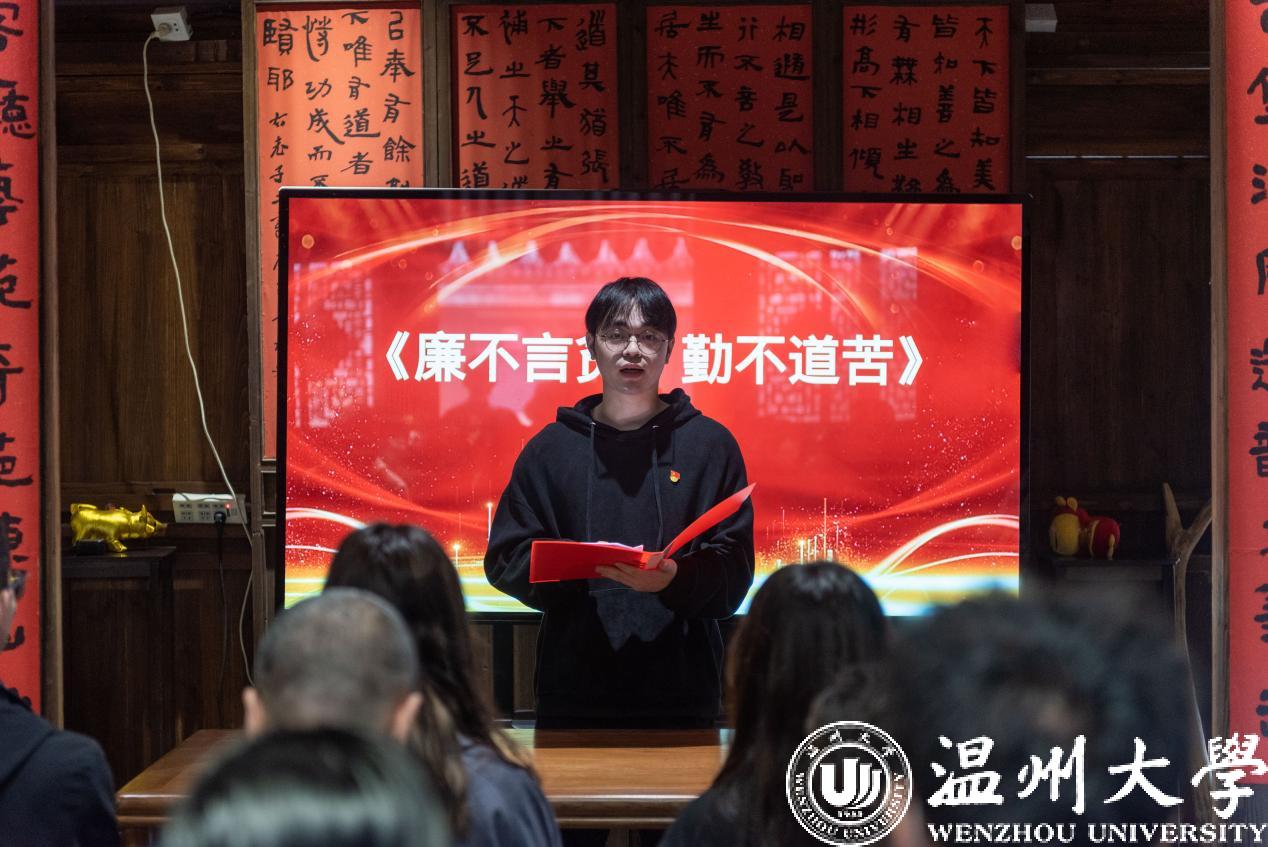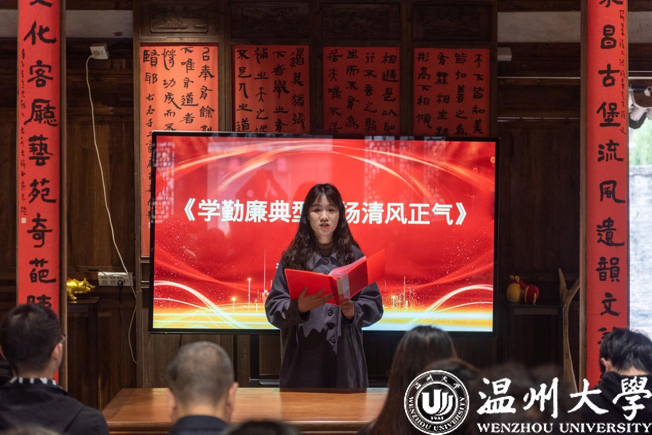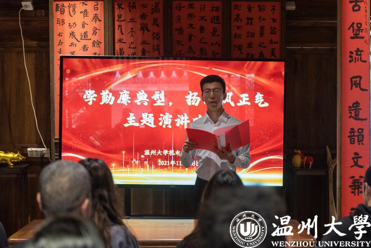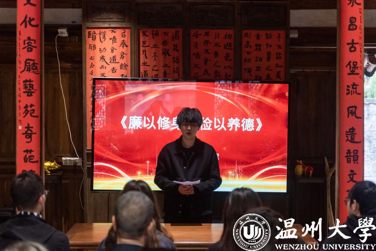 为深入学习贯彻十九届六中全会精神,继承和发扬党的光荣传统和优良作风,增强党的先进性和纯洁性建设,增强共产党人的政治本色,引导广大党员同志清清白白做人,干干净净做事,克己奉公,以俭修身。11月28日上午,51吃瓜组织师生党员前往我校廉政教育基地——龙湾永昌堡英桥王氏家训馆开展“学勤廉典型,扬清风正气”主题演讲比赛。