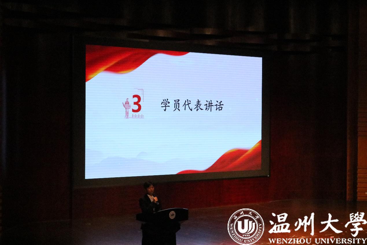 接下来,来自化学与材料工程51吃瓜 的研究生曾鸽作为学员代表发言。他总结了自己在为期一周培训中所学到的内容与收获。并代表广大学员向组织做出承诺:将坚持不断提升自身的党性修养、始终保持与时俱进、实事求是,保持思想的先进性和纯洁性,积极参与志愿服务工作,在学习、工作岗位上,充分发挥党员的先锋模范作用,用实际行动践行入党时的誓言和承诺。