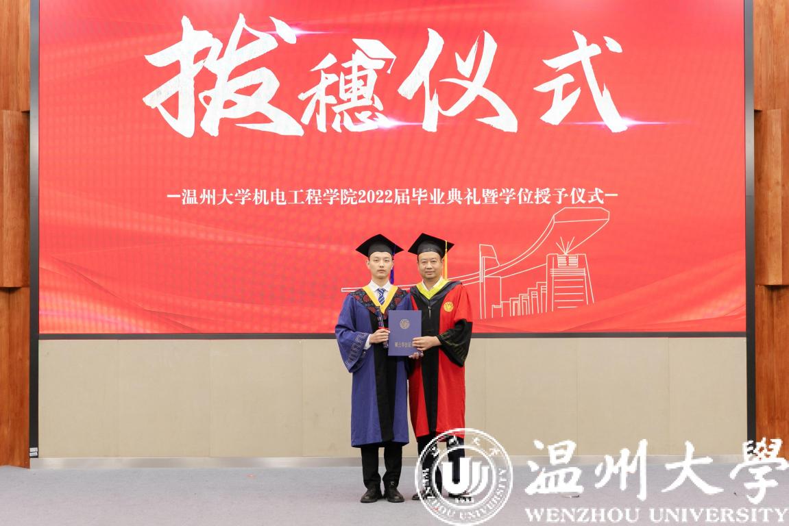 大会第六项议程,拨穗仪式。伴随着激昂的旋律,毕业生们接受院长拨穗及颁发证书,学士帽的流苏从右边拨到左边,意味着稻穗成熟,学子们学有所成。