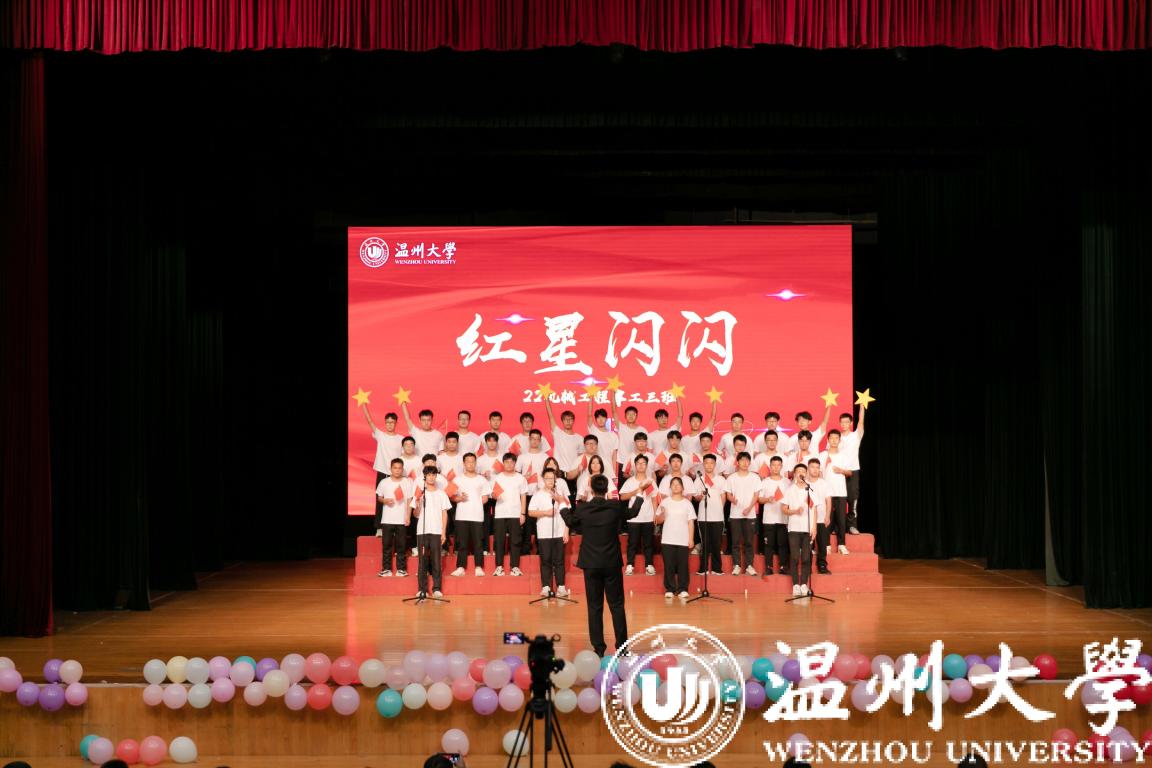 一支支班级队伍昂首挺胸,一首首红色歌曲回荡在校园上空。《中国军魂》、《渴望光荣》、《打靶归来》、《强军战歌》等,同学们用嘹亮的歌声唤起了慷慨报国的凌云壮志。《我爱你中国》、《我和我的祖国》、《大中国》等唱出了同学们对祖国拳拳赤子之心。《我们都是追梦人》、《有我》等则是唱出了青年们的责任与担当。