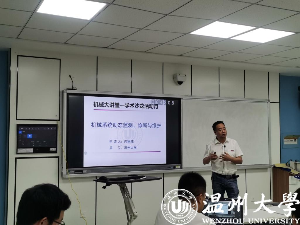 经主持人一番开场白后,首先由向家伟院长做了主题为《往复机械工作冲击干扰》的报告。他从“往复机械振动信号特点”、“FEM驱动带通滤波器方法”、“带宽调整策略”三个方面深入浅出地展开,并提出了仿真工具与故障特征提取、智能诊断、寿命预测与维修决策的有机结合。此外,向院长还从自身的科研经历出发,阐述了科研没有捷径,最大的技巧便是勤奋,只有多打磨自身,不放过任何细节,才能出成果。最后他勉励青年博士,作为学校发展新生力量,青年教师一定要不负韶华,砥砺前行,肩负时代赋予的重任,为学校教育教学和科学研究工作的建设与发展做出更大的贡献。