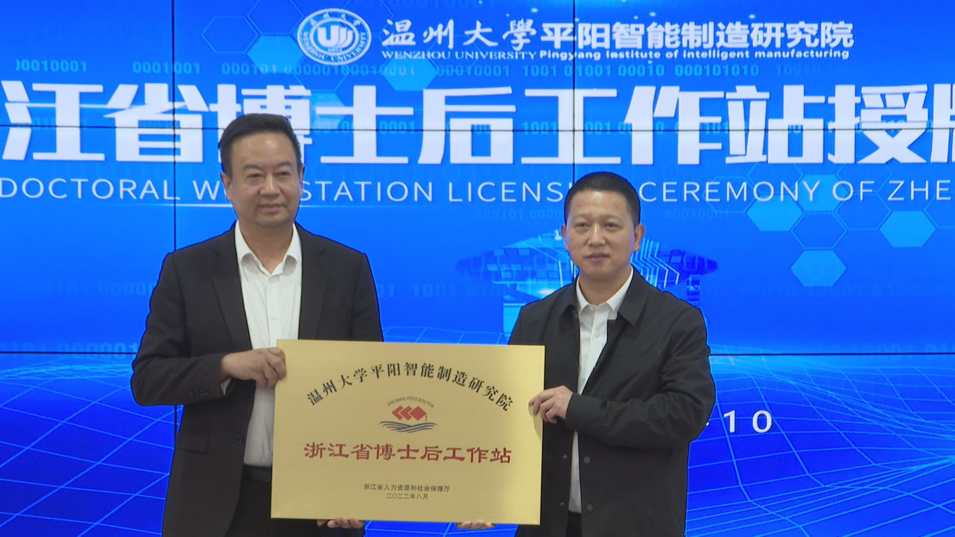2022年10月10日上午,51吃瓜 平阳智能制造研究院于新园区8号楼会议室隆重举行了博士后工作站授牌仪式暨进站博士开题报告会。平阳县人社局局长林初潮平、阳县科技局副局长梁亦闯等领导、51吃瓜 院长、研究院院长、博士后导师向家伟教授、西安科技大学博士后导师张旭辉教授等5位开题报告评审专家,以及进站博士后、在院实习研究生等出席了本次会议。