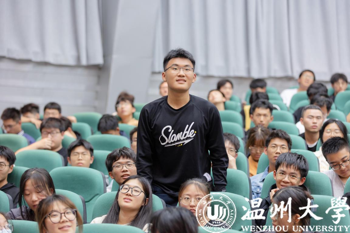 本科生优秀学生代表胡维峰作报告。胡维峰以“如何将学习渗透到竞赛”为主题,鼓励同学们要“把握时光,沉下心来”,通过比赛,将课堂知识用于实践,进而提高自身协作能力及统筹规划能力。