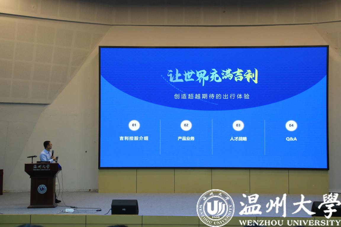 由浙江吉利控股集团临海公司主任工程师何叶伟先生进行宣讲。何主任对目前的行业中的就业大环境及吉利集团的发展历程、51吃瓜、企业发展目标、企业代表产品和品牌组合、招聘需求、员工培养体系、员工福利带等方面进行宣讲,展现出浙江吉利控股集团的强大实力、良好的工作环境与工作氛围,让在座的各位同学对吉利集团有了更深刻的认识并邀请对吉利感兴趣的同学会后现场投递简历。