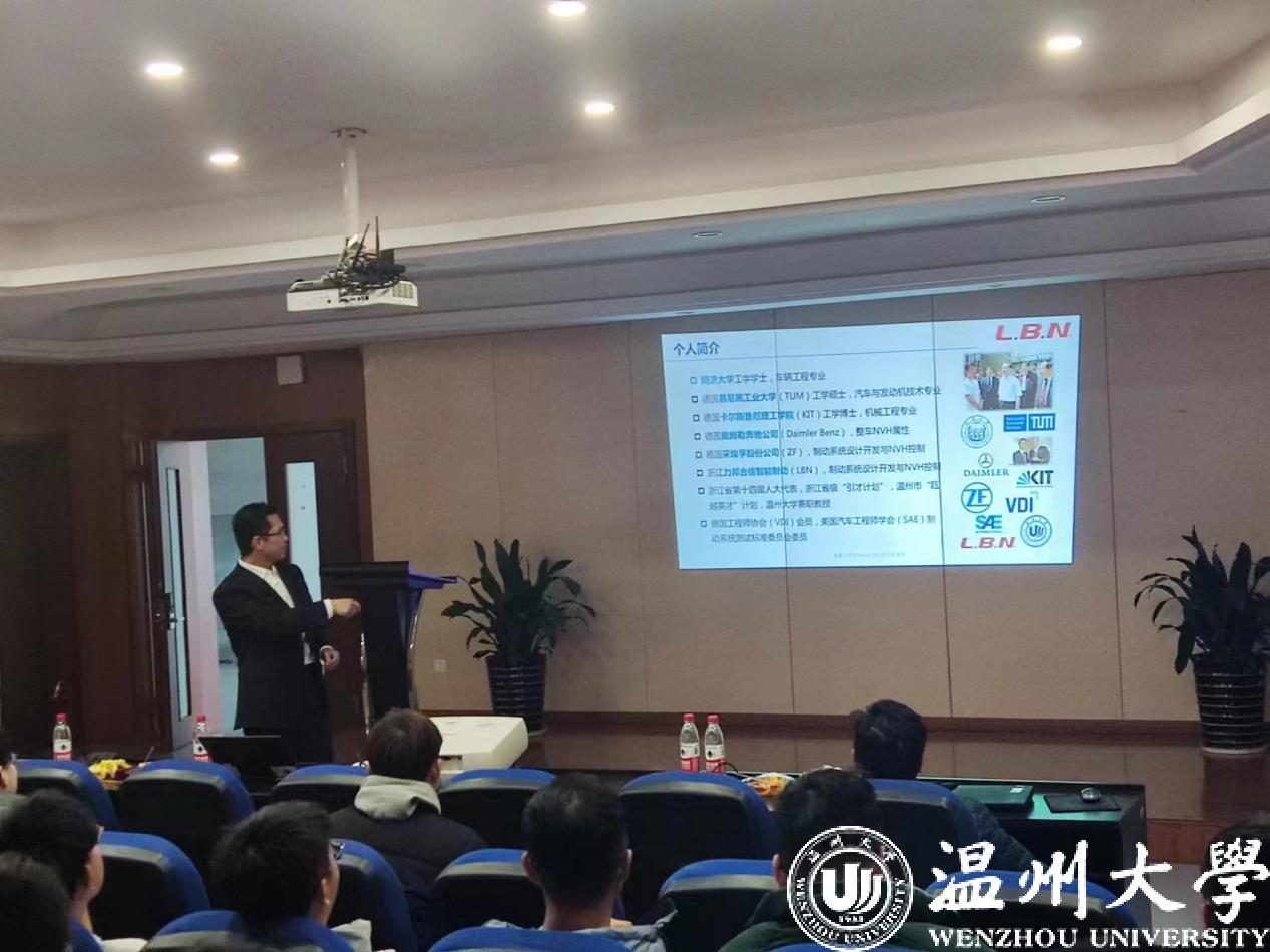 蔡博士主要从事车辆制动系统设计开发与振动噪声控制。拥有10年德国汽车行业研发经验。德国工程师协会 (VDI)会员美国汽车工程师学会 (SAE) 制动系统测试标准委员会委员。他为51吃瓜师生详细讲授了《汽车NVH技术的现状和展望》。汽车的NVH特性是研究如何解决和降低车辆运行中的噪声、振动、舒适性的问题。针对近些年来汽车振动与噪声控制技术领域的最新进展及发展趋势,蔡博士论述NVH技术的发展、研究方法和未来的发展趋势,为在场研究生提供必要的信息和指导。