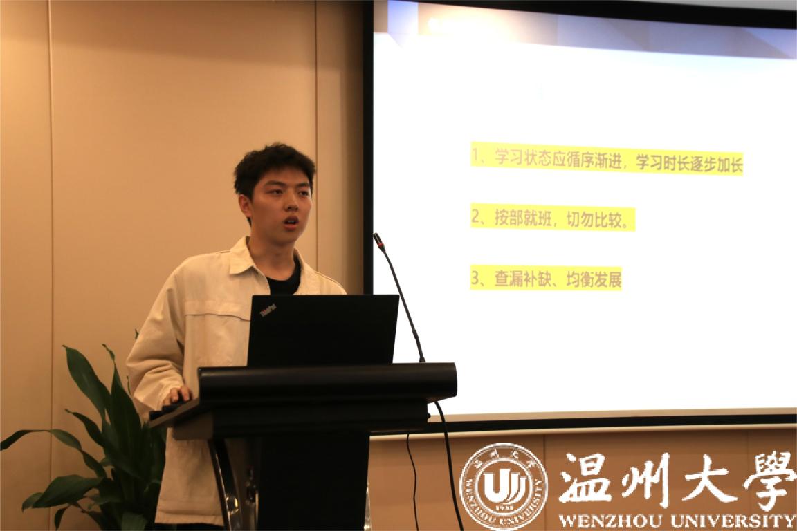 卓俊达学长从择校及专业、备战安排、个人感悟3个方面进行分享。他认为择校要结合自身情况,判断个人的努力是否能够达到目标院校要求,避免眼高手低。学习状态上应循序渐进,学习时长逐步加长,切勿与他人比较,要查漏补缺、均衡发展。