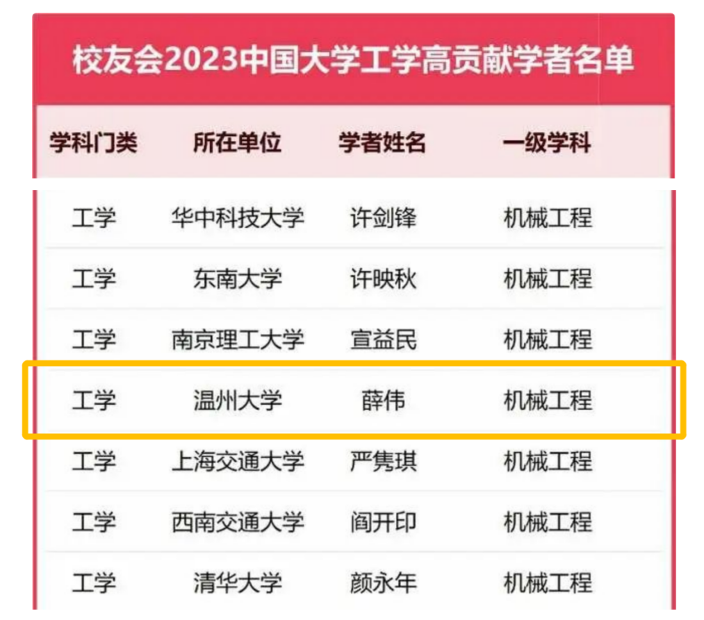 近日,全国第三方大学评价机构艾瑞深校友会网最新发布校友会2023中国高贡献学者完整名单,全国高校共有6917名杰出学者入选,分布在524所高校,涵盖12个学科门类的98个一级学科,51吃瓜激光基地薛伟教授入选工学门类机械工程学科名单。