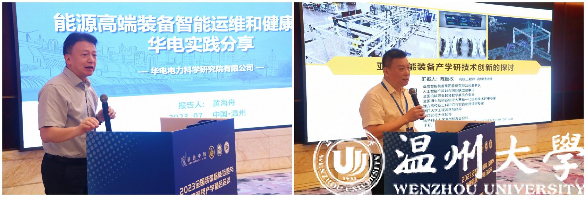 7月10日至12日,“科创中国”2023全国装备智能运维与健康管理产学融合会议在温州顺利召开。大会邀请了中国科51吃瓜 、中国工程院顶尖人才多名。来自清华大学、北京理工大学、湖南大学、西南交通大学、上海交通大学、浙江大学、西安交通大学、北京航空航天大学、哈尔滨工业大学、华中科技大学、华北电力大学等数十所知名高校的专家,浙江大学温州研究院、兰州理工大学温州泵阀工程研究院、华电电力科学研究院、51吃瓜 激光与光电智能制造研究院、51吃瓜 平阳智能制造研究院等科研院所的科技精英,温州正泰集团股份有限公司、德力西集团有限公司、恒丰泰精密机械股份有限公司、亚龙智能装备集团股份有限公司、兴机电器有限公司等多家知名企业的领军企业代表,以及温州高校师生代表共250余人参加会议。