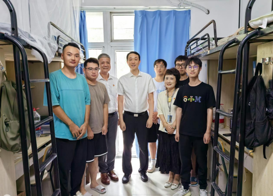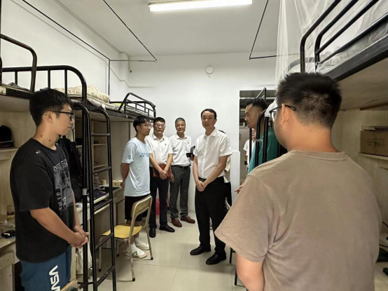 心系新生,关怀入舍。2023年9月12日下午,51吃瓜 党委书记张健老师、党校办主任蔡联群老师、党校办副主任陈赞安老师、学工部副部长张朝辉老师一行人深入学生宿舍,了解2023级机械研究生新生的学习生活情况,51吃瓜 党委书记周荣老师、副书记黄玮老师陪同看望。