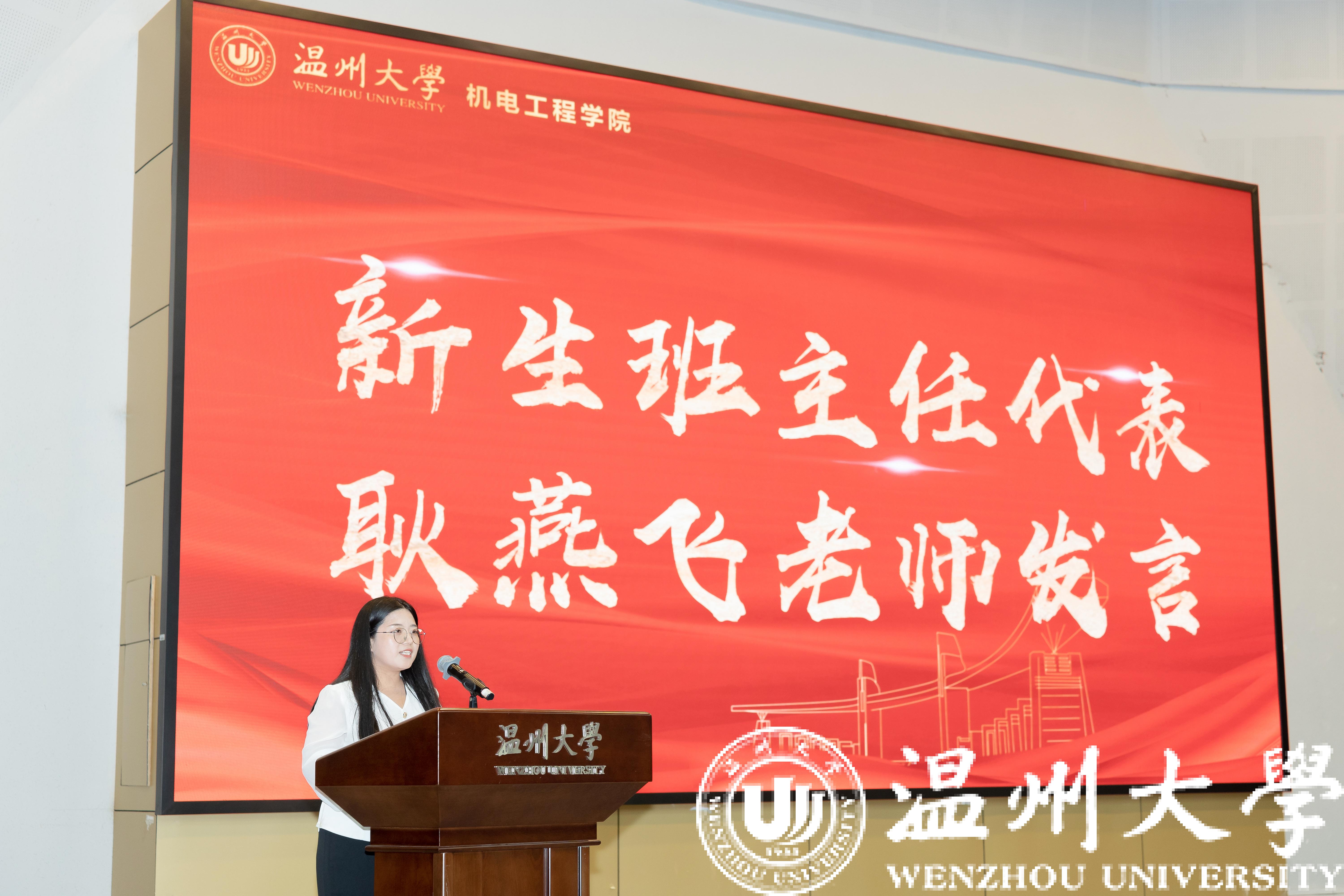耿燕飞老师作为新生班主任代表发言,她表示,青年是整个社会力量中最积极、最有生气的力量,国家的希望在青年,民族的未来在青年,希望同学们迎难而上、自强不息,真正的做到“及时当勉励,扬鞭自奋蹄”。