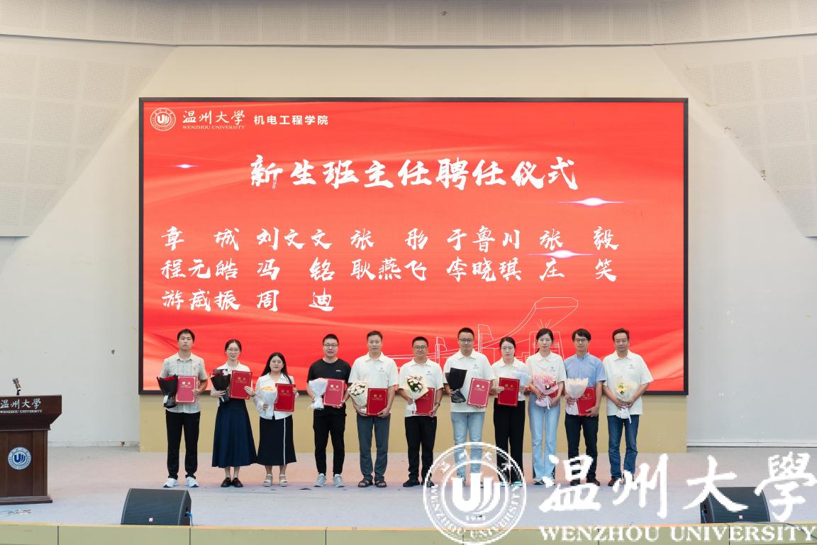 随后,举行2023级新生班主任聘任仪式,黄玮副书记依次向新生们介绍了12位优秀的班主任老师,向家伟院长上台为新生班主任颁发聘书,学生代表上台献花。