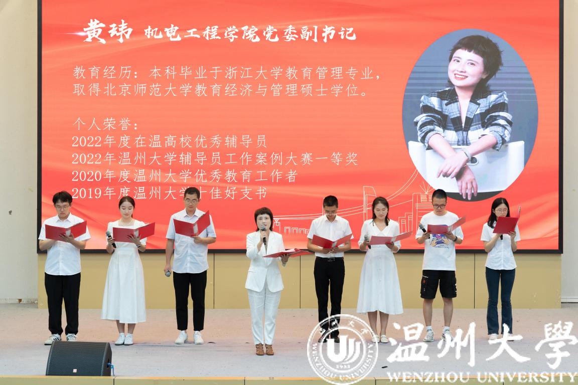 仪式在辅导员的诗朗诵表演中推向高潮,一首《走向远方》送给全体新生,深情的朗诵中寄托着老师们深深的祝福,同时鼓励同学们不畏风雨,砥砺前行,焕发青年人的朝气蓬勃,铭记温大人的奋进传统、勇担接班人的光荣使命。