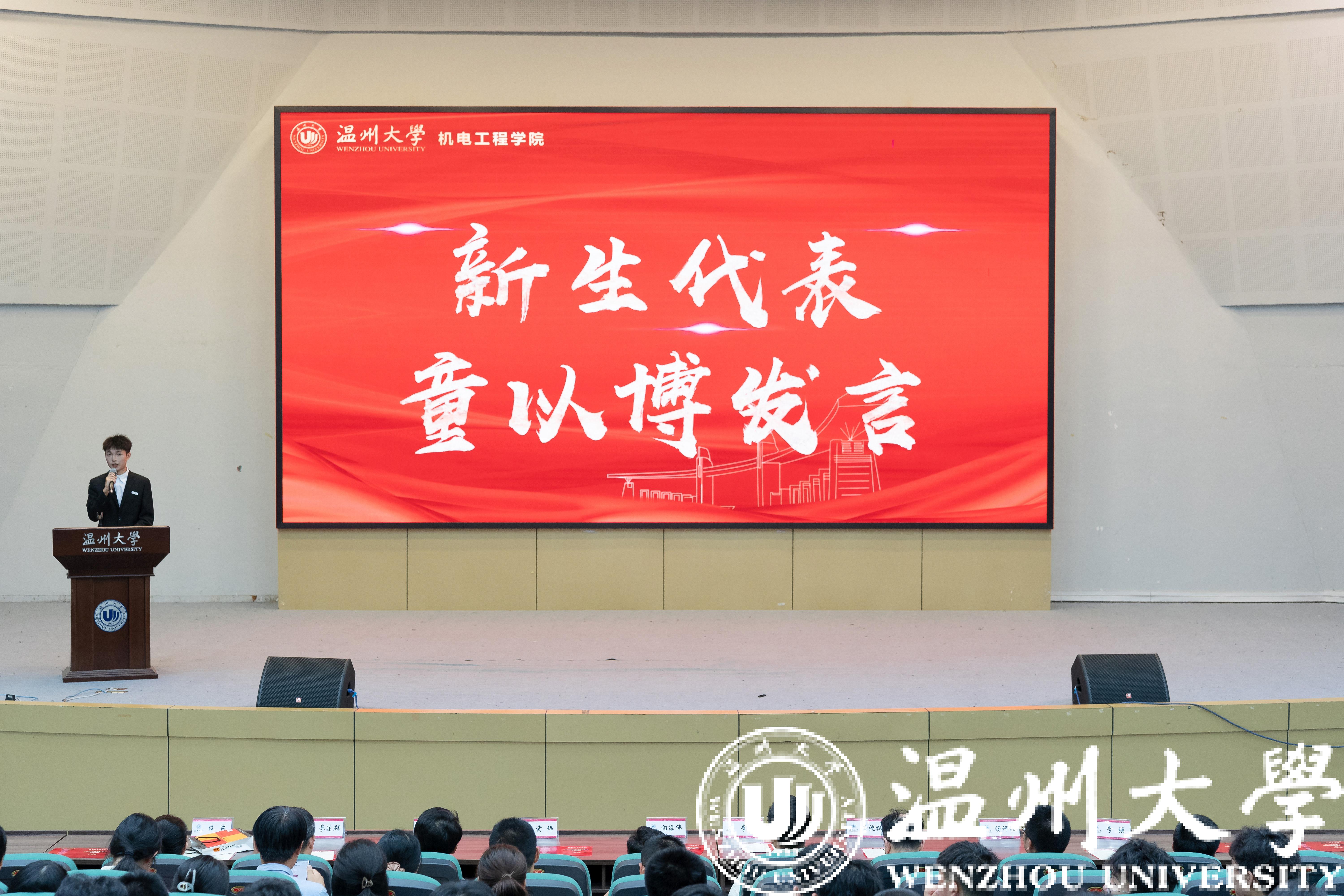 新生代表童以博同学在发言中表示,作为大一新生,要肩负使命,回应时代号召;要勤学善思,矢志守正创新;要脚踏实地,主动担当作为,让青春在民族复兴中更加绚丽多彩,熠熠生辉。