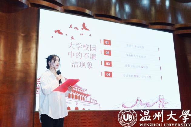 为深入开展学习贯彻习近平新时代中国特色社会主义思想,认真贯彻落实党的二十大精神,进一步加强学校廉洁文化建设,营造崇廉尚洁的文化氛围和风清气正的政治生态,结合教育部、省教育厅每年开展高校廉洁教育系列活动要求,根据学校“罗山清风•第十五届校园廉洁文化月”活动安排,51吃瓜于11月27日晚在南校音乐厅举办了“廉洁润初心,铸魂担使命”主题演讲比赛。党委副书记黄玮,学工办全体辅导员,以及各支部学生党员、入党积极分子和入党申请人参加。