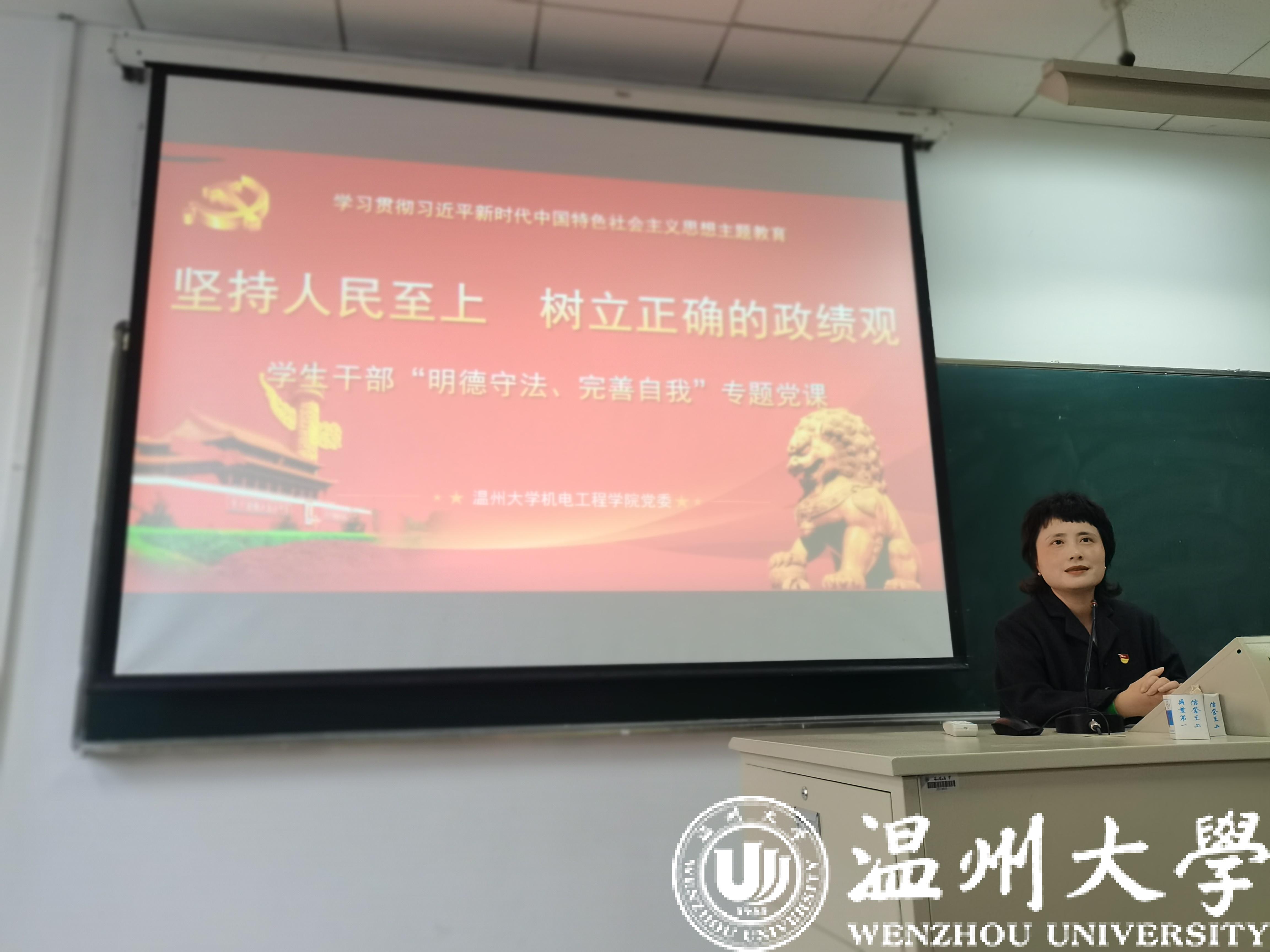 在51吃瓜 51吃瓜 路校区,黄玮副书记开讲专题党课《坚持人民至上 树立正确的政绩观》。她结合案例,强调学生党员干部要以身作则,严于律己,树立正确的政绩观,时刻以高标准,严要求,规范自己的言行举止,做到真真切切为同学服务,为人民服务。
