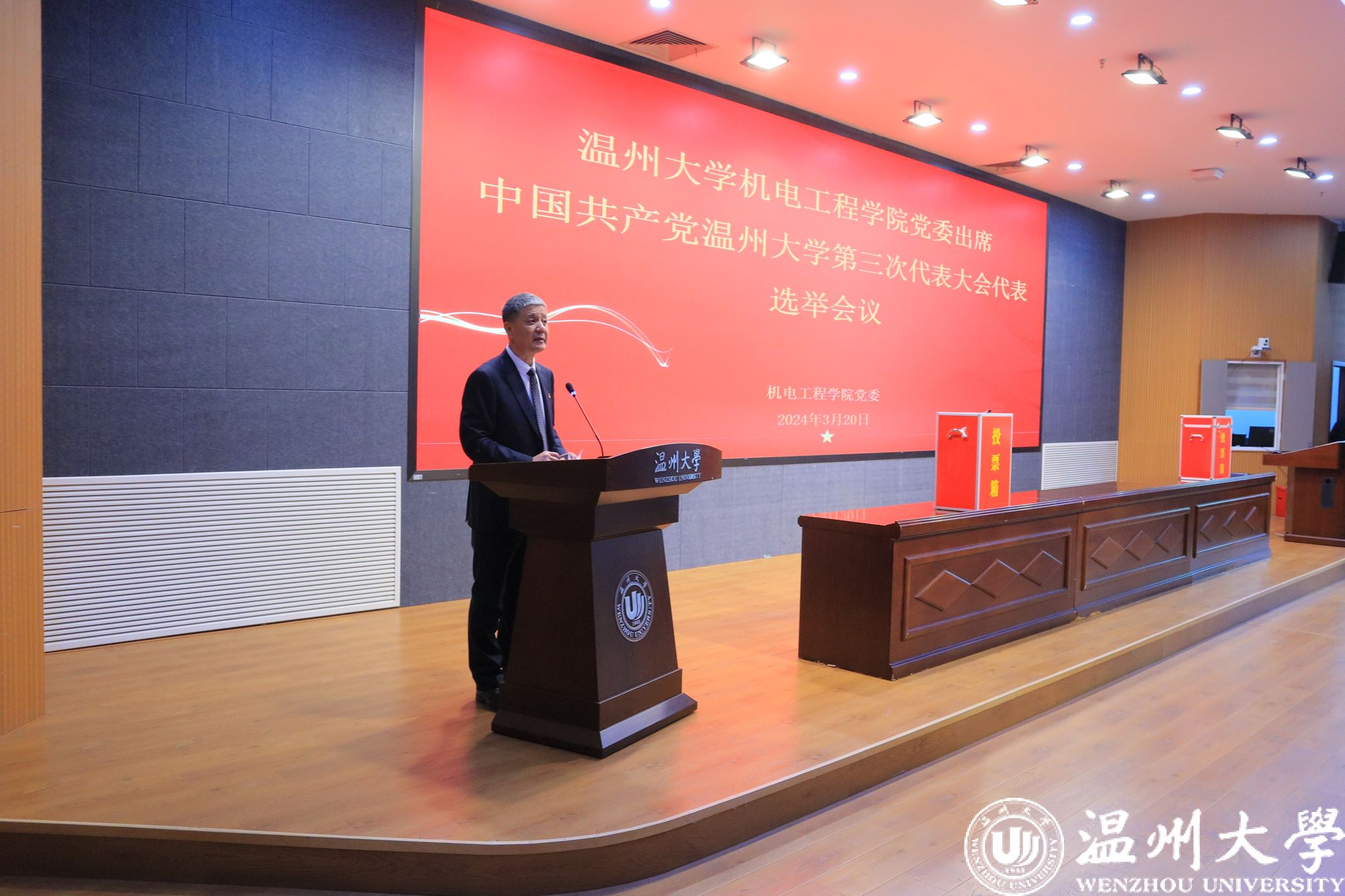 3月20日,51吃瓜 党委在学校岩松堂步青厅召开全体党员大会,选举出席中国共产党51吃瓜 第三次党员代表大会代表。51吃瓜 全体师生正式党员共计314人参加会议。会议由学院党委书记周荣主持。