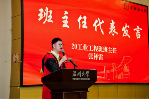 随后,20工业工程班主任张祥雷老师寄语毕业生:身处顺境要乘风破浪,面临困境要不自暴自弃,将来能成为有抱负、有担当的人,能永远拥有信心、爱心和盼望,懂得感恩、懂得释怀、懂得取舍,在未来的日子里能拥有快乐和从容。