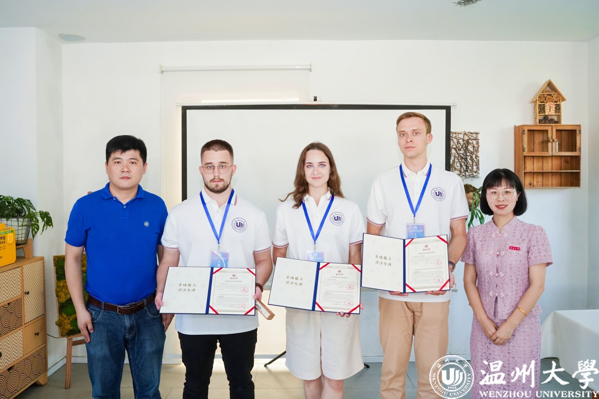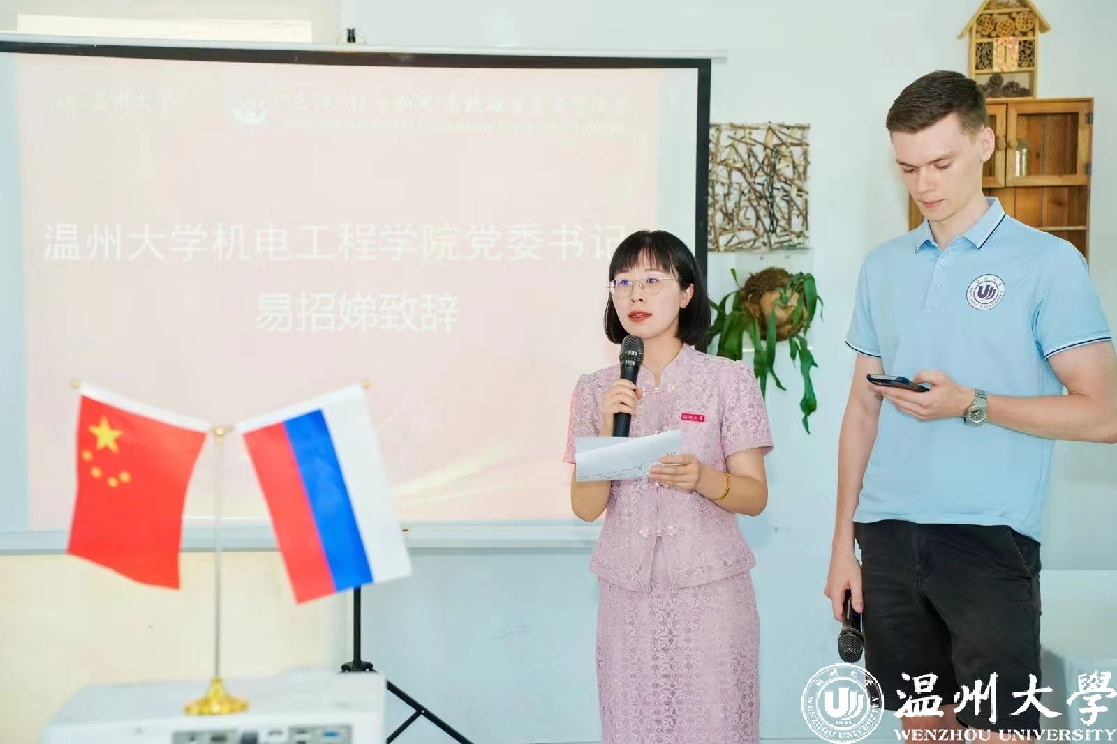 2024年7月6日,俄罗斯伏尔加河沿岸联邦区青年长江行(温州站)活动迎来最后一天的精彩时刻。经过五天的文化交流与探索,俄罗斯青年代表们在温州和杭州度过了充实而难忘的时光。清晨,9名青年代表和5名51吃瓜 学生代表从杭州乘坐高铁返回温州,前往山根小镇参加结营仪式。参加本次结营仪式的领导有51吃瓜 党委书记易招娣,茶山街道办事处副主任周丹,温州国际传播中心主任郑国健,国际处副处长熊勇,51吃瓜 副院长黄沈权,以及全程参与本次活动的耿燕飞,柯一睿和冯铭3位老师。首先,51吃瓜 党委书记易招娣在致辞中强调了本次中俄文化交流活动的重要性。希望通过此次活动,能够加深两国青年之间的理解与友谊,促进中俄文化的融合与发展。