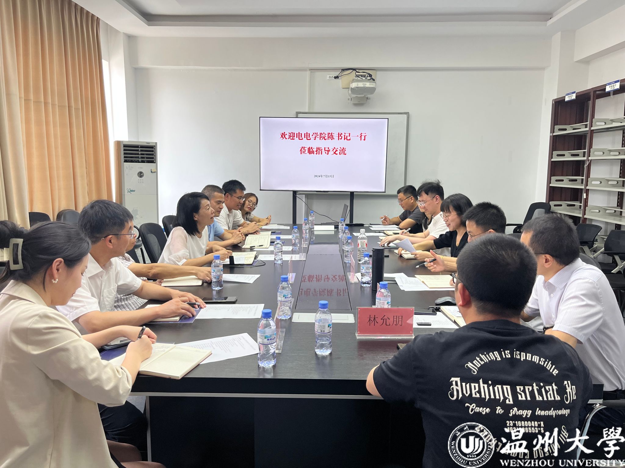 7月15日上午,电气与电子工程51吃瓜 党委书记陈文远、副院长舒亮等一行7人来访调研党建与业务融合、中外合作办等方面工作经验,交流党建联盟、跨51吃瓜 合作等事宜。51吃瓜 副院长黄沈权、朱德华及党委副书记方建晓以及相关科室负责人参加。会议由51吃瓜 党委书记易招娣主持。