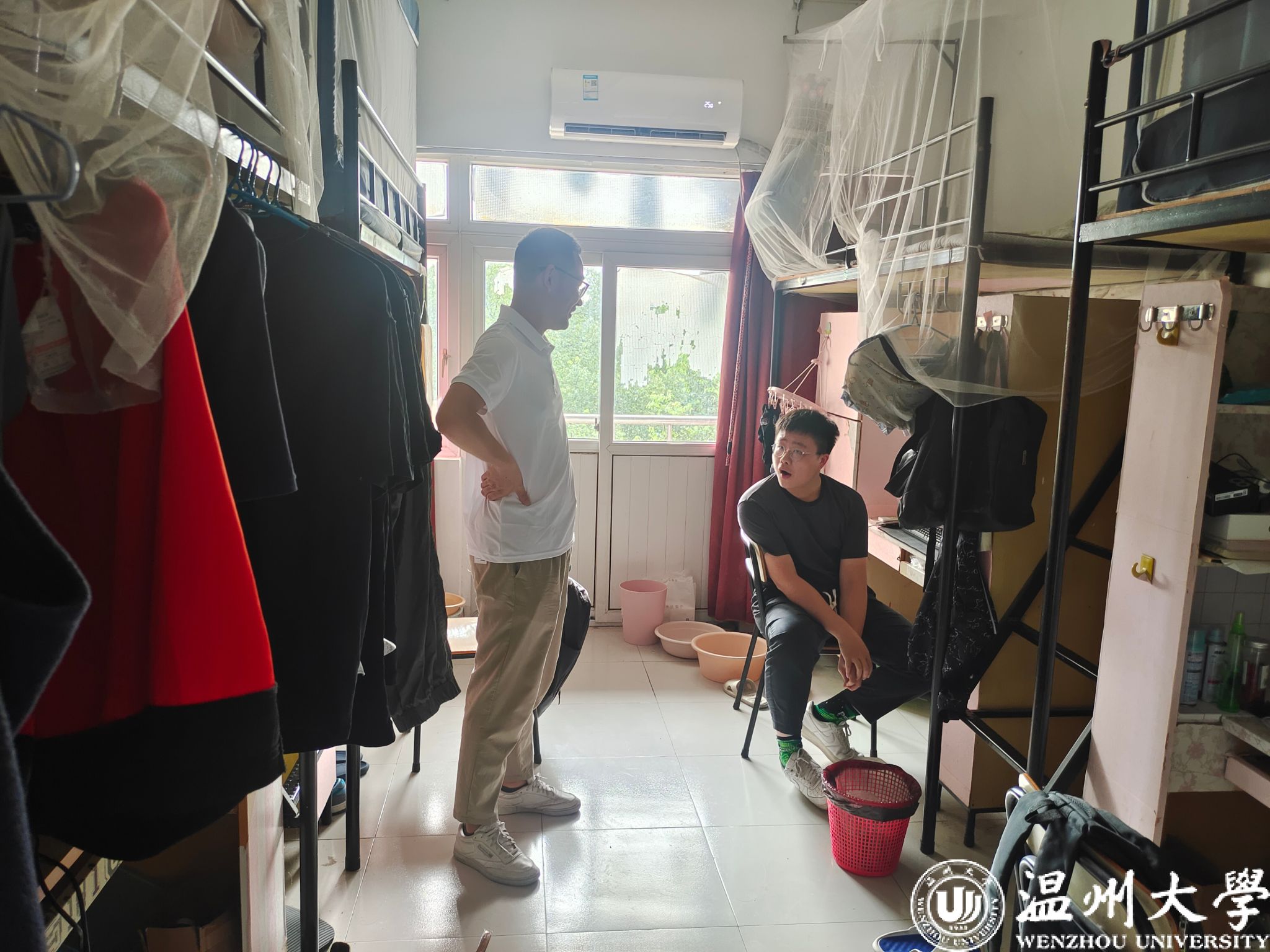 辅导员深入本科生与研究生宿舍进行巡查,提醒学生们要大幅提升台风期间的安全防范意识,并叮嘱学生提前储备好方便面、矿泉水、面包等必要的抗台物资。一旦遭遇突发状况,请务必及时拨打学校的值班电话。
