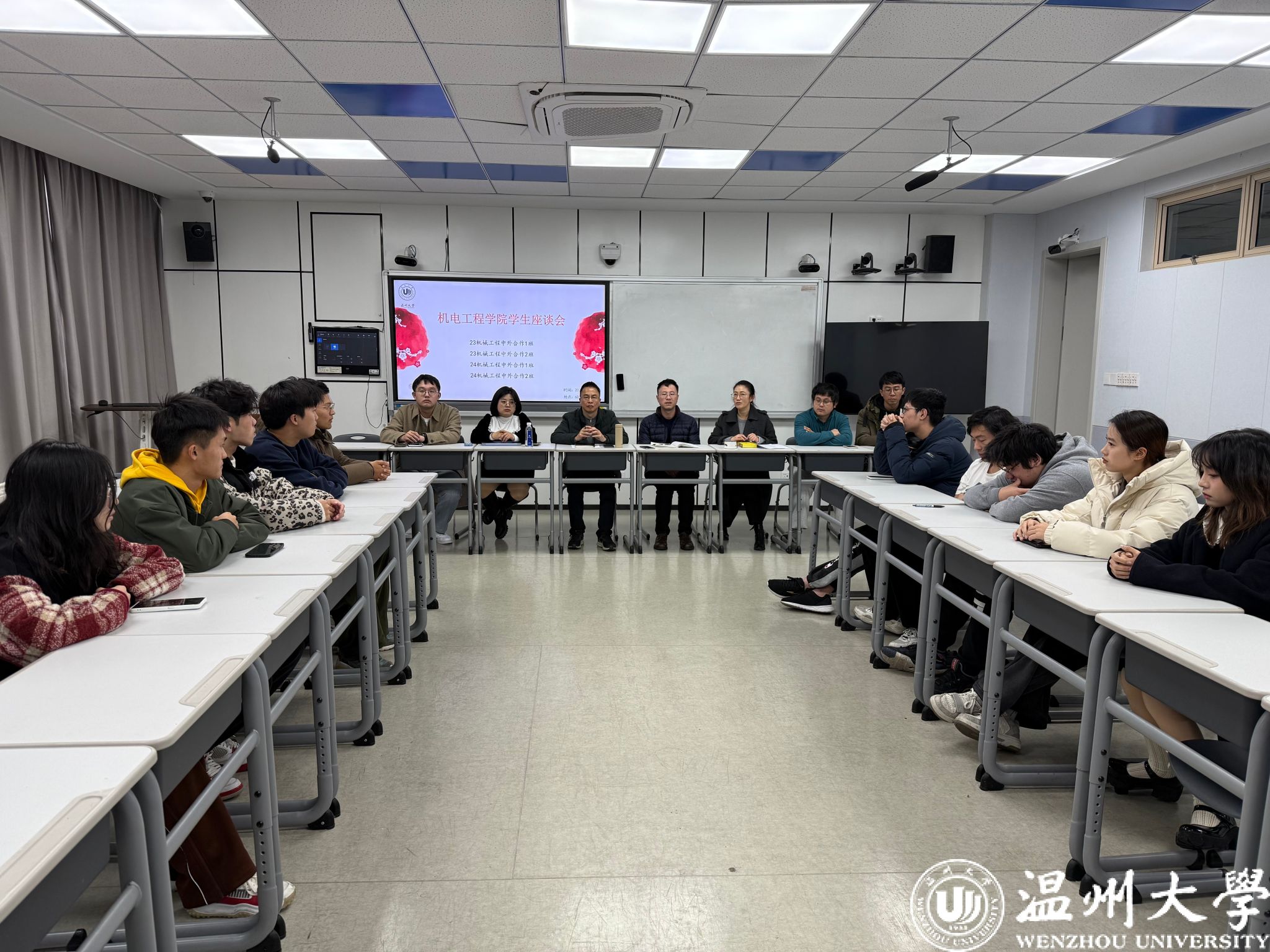 2024年12月25日,机电51吃瓜 6B-504会议室洋溢着热烈的讨论氛围,中外合作办学专业的期末学生座谈会在此成功举行。本次座谈会由任燕教授主持,党委副书记方建晓书记、教学副院长黄沈权及多位教师代表出席,与学生代表进行了深入的交流与探讨。