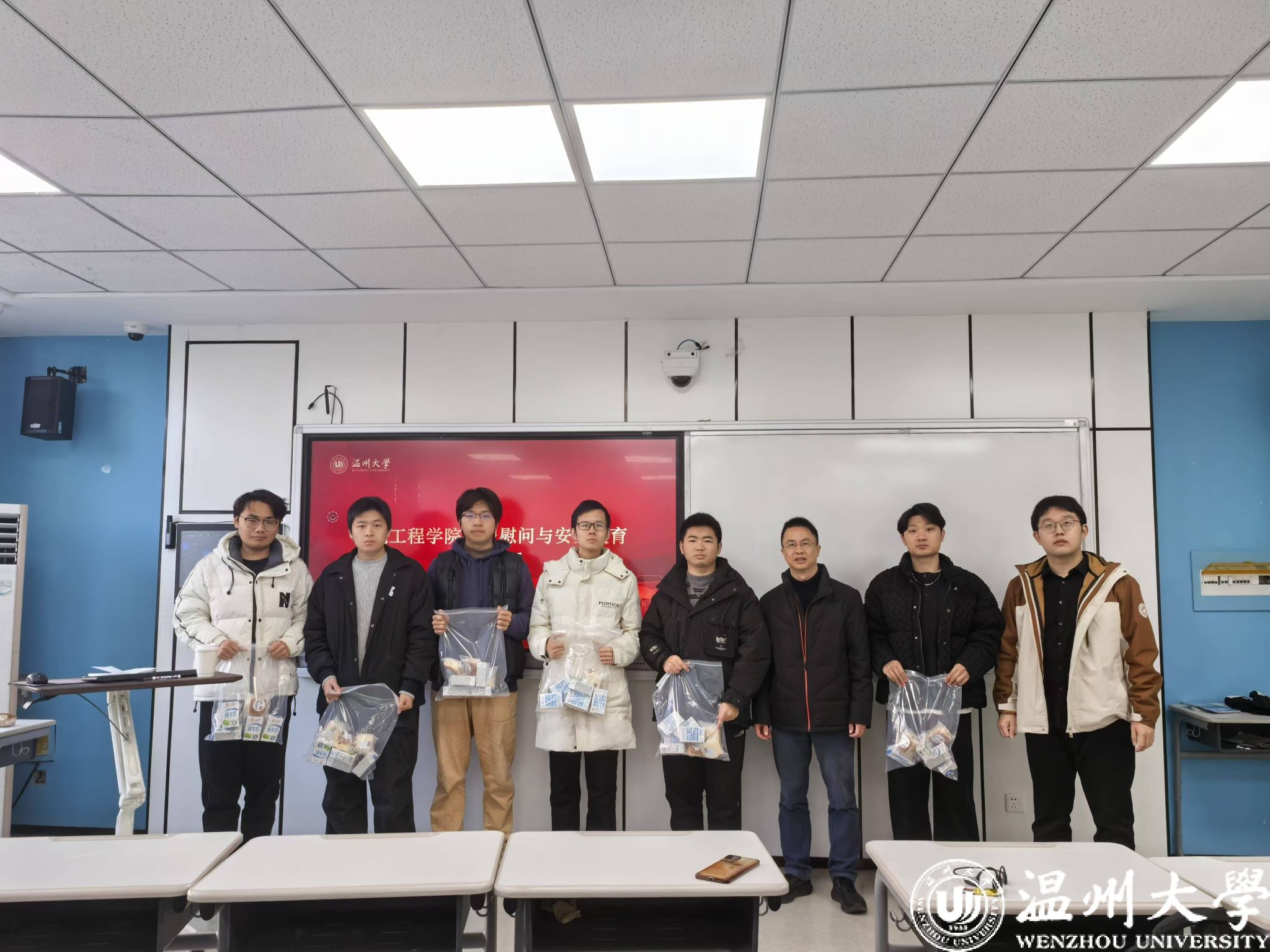 学院高度重视中外合作办学专业学生的生活、学习、安全等情况,学院党委副书记方建晓代表学院表示了慰问,给本专业留宿的学生送上新年慰问品。同时,借此机会了解每位中外合作办学专业学生的生活、学习情况,尤其是对寒假留校的学生表达了慰问和安全提醒,保证留校学生度过一个安全、快乐、温馨的假期生活。