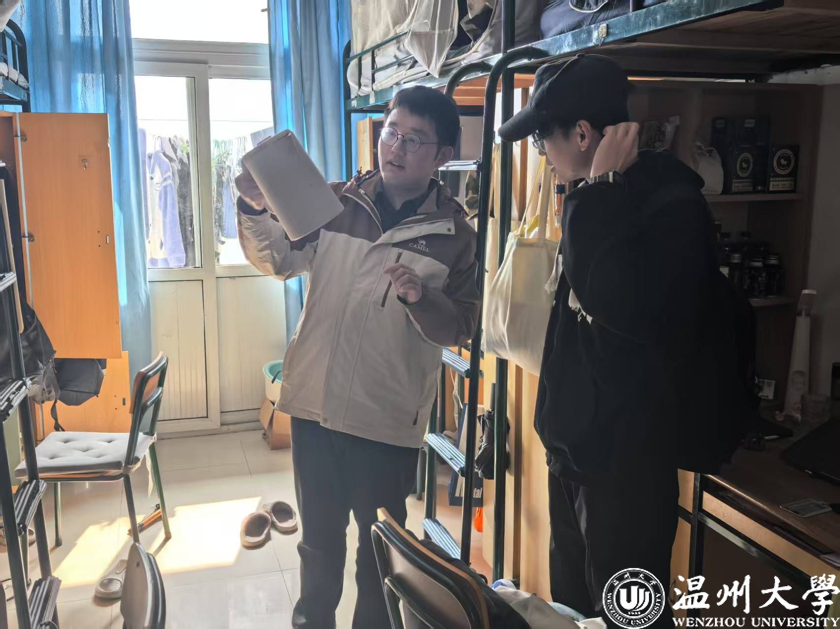 现场林博远老师对宿舍内外清洁与安全状况进行了细致检查,提醒大家注意保护人身安全、财产安全,共同营造整洁、安全校园。