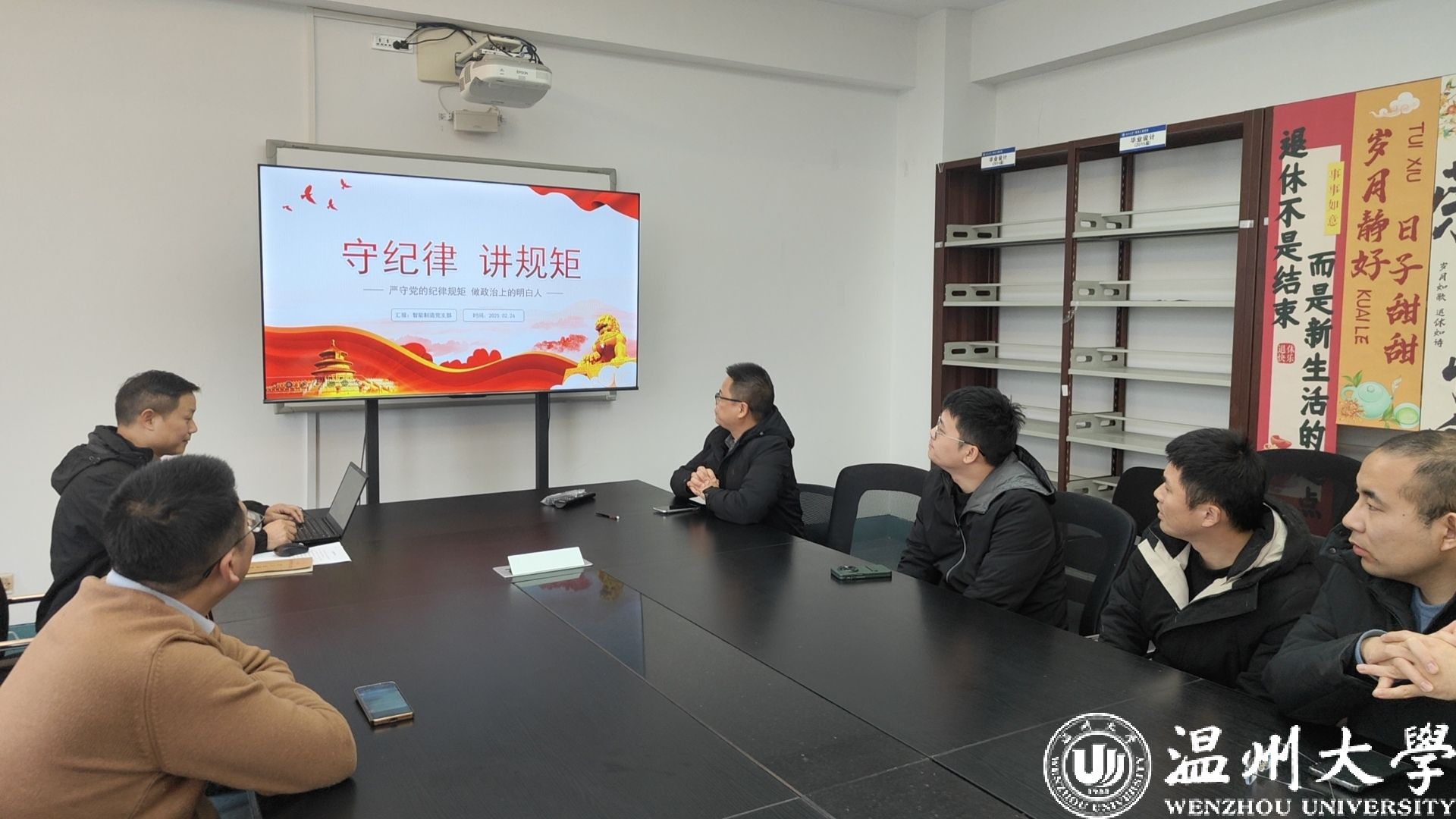 随后,智能制造工程党支部组织开展 “严守党的纪律规矩,做政治上的明白人” 专题党课。汤何胜老师强调,严守纪律规矩需从强化政治修养、深入学法明纪、立身为旗发挥示范引领、加强监督监察这四个关键维度精准发力。在阐述过程中,汤老师借助实际案例警示,并结合历史事迹,深入引导党员增强纪律意识,着力树立良好形象,切实成为政治上的明白人。