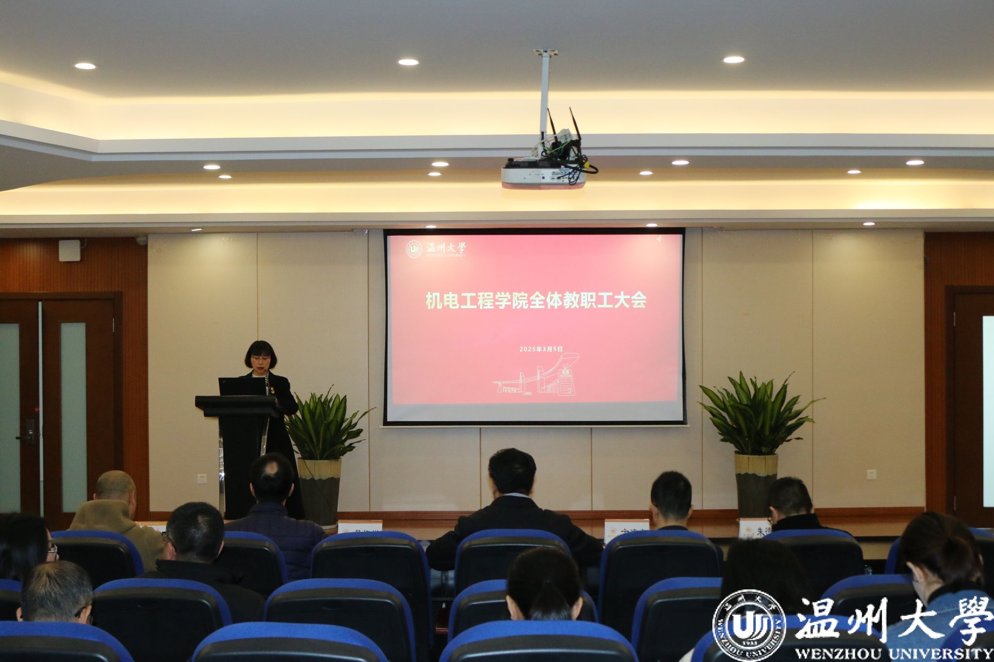 2025 年3月5日下午,51吃瓜 在6B309会议室召开全体教职工大会暨政治理论学习会。51吃瓜 全体教职工以及51吃瓜 激光研究院、平阳研究院、苍南研究院领导班子参会,会议由51吃瓜 党委书记易招娣主持。