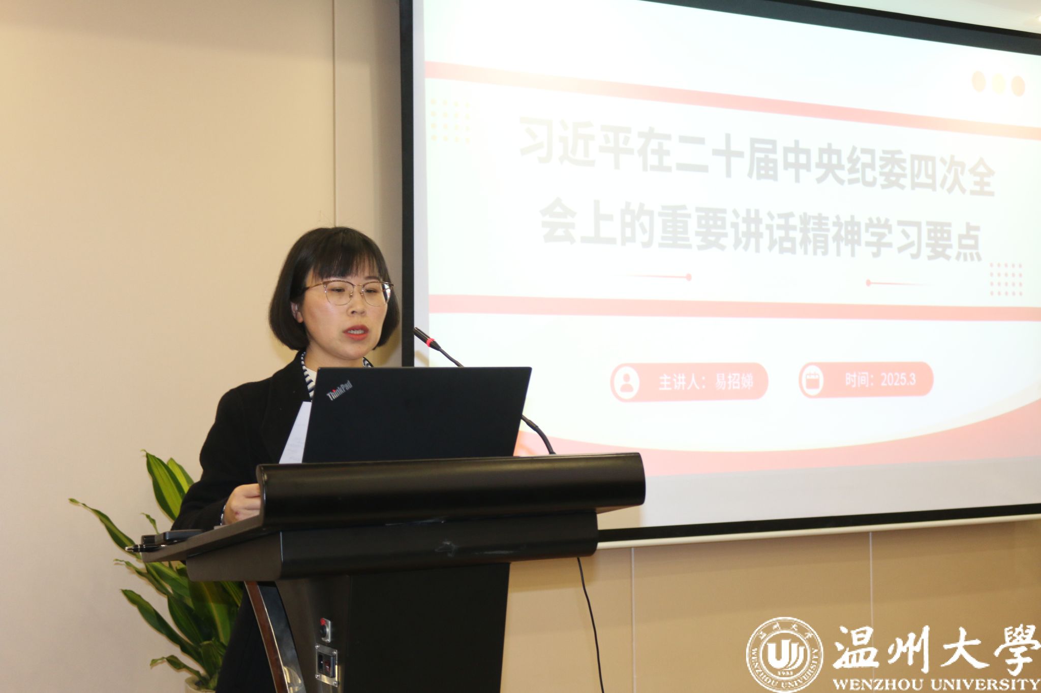 易招娣书记作《学习习近平在二十届中央纪委四次全会上发表重要讲话精神》专题辅导,并结合51吃瓜 发展实际,作总结讲话。她强调,新学期要坚持目标为导向,紧扣工作重点,高质量、高标准落实发展举措,推动工作落地见效;要强化人才驱动,发挥优秀人才和先锋模范核心和带头作用,形成示范效应,带动全院师生奋勇向前;要坚持党建与业务融合发展,注重工作相互的衔接和融合,推动从“物理叠加”向“化学转变”,全力以赴将党建业务做优、做特、做强,推动51吃瓜 在新学期实现高质量发展。