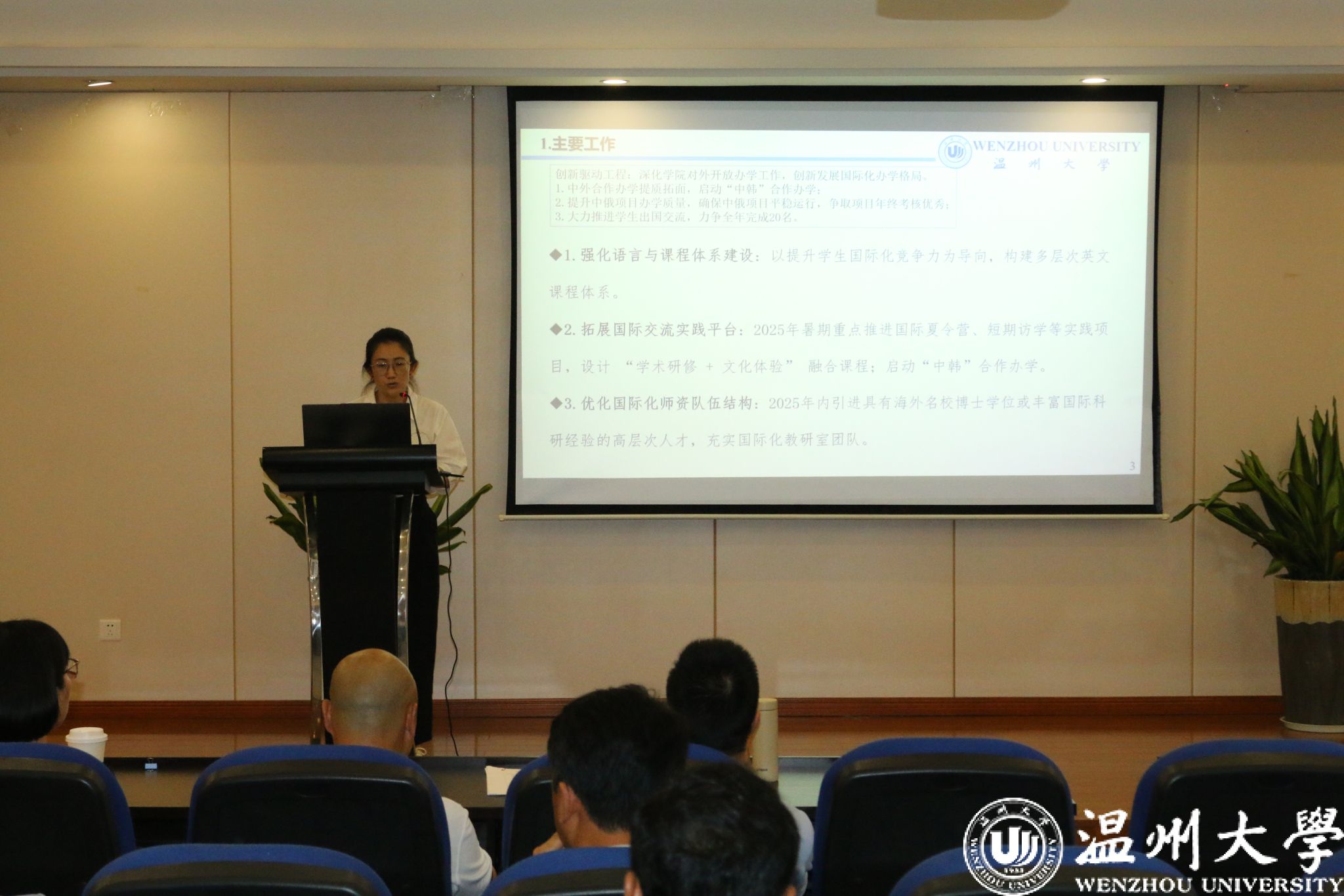 易招娣书记作总结讲话。她指出,要筑牢底线思维,以安全为第一要义守护师生身心健康;聚焦高质量内涵建设,深化教育教学改革、优化学科布局、激活科研创新动能,培育新质生产力;立德树人,加强学风建设,强化师德师风引领,营造优良的学术氛围。她强调,要充分利用好“暑假”这个关键时间结节,在做好自身教学科研同时聚焦自身优势并结合51吃瓜 实际,谋划更实举措、展现更强担当和作为,为推进51吃瓜 发展贡献智慧力量。