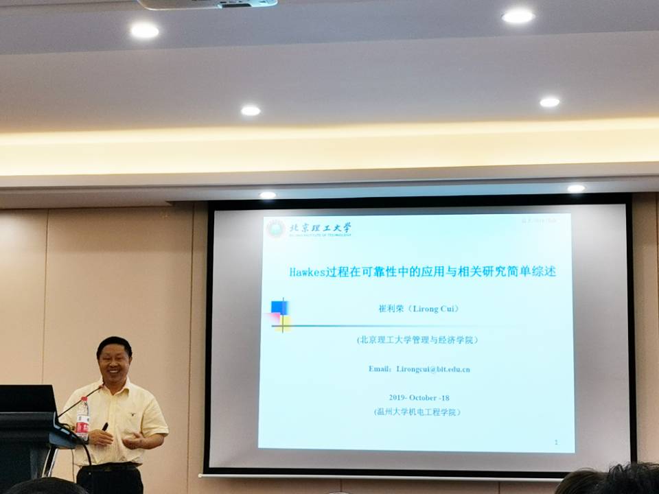 10月18日上午,国家自然基金管理科学专业评审组专家、北京理工大学管理与经济51吃瓜 崔利荣教授在51吃瓜 6B309学术报告厅为51吃瓜 师生做了一场题为“Hawkes过程在可靠性中的应用与相关研究简单综述”的学术讲座。本次讲座由51吃瓜 院长周宏明主持。