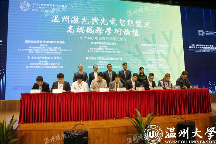 10月27日上午,2019世界青年科学家(温州)峰会系列活动之一——温州激光与光电智能制造高端国际学术论坛在温州高新区(龙湾区)举行,22个涉及激光光电与智能制造等相关领域的项目进行集中签约,同时,浙江省激光与光电产业联盟正式落户龙湾,这将为龙湾科技创新发展注入新的强劲动力。