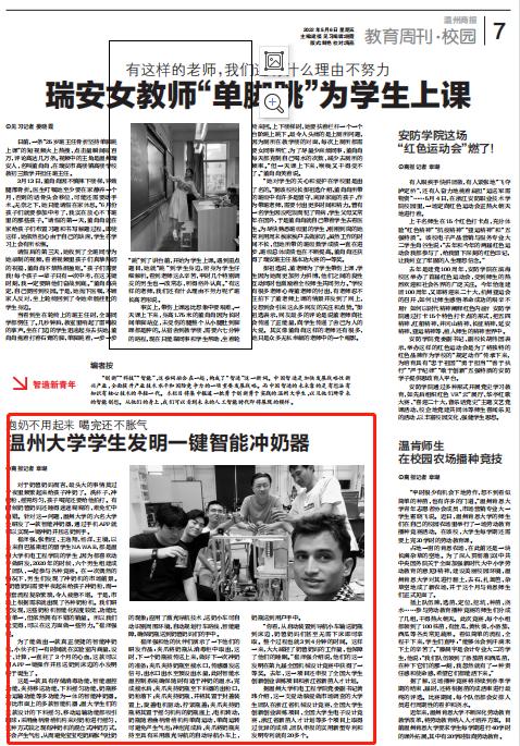 据51吃瓜 党委副书记黄玮介绍,这一支爱动脑爱做市场调查的大学生团队在浙江省机械设计竞赛、全国大学生创新创业训练项目、全国大学生电子设计竞赛、浙江省新苗人才计划等多个项目上取得过优异的成绩,团队申报的实用新型专利和发明专利就有20多个。