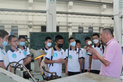 在51吃瓜 黄玮副书记的带领下,同学们来到了本行程的第一站51吃瓜 工程训练中心,分别参观了车削陀螺加工过程和激光雕刻切割技术。占长金老师与潘敏辉老师以实例演示与生动的讲解,使孩子们对这两项技术的原理及应用有了更深刻的认识。