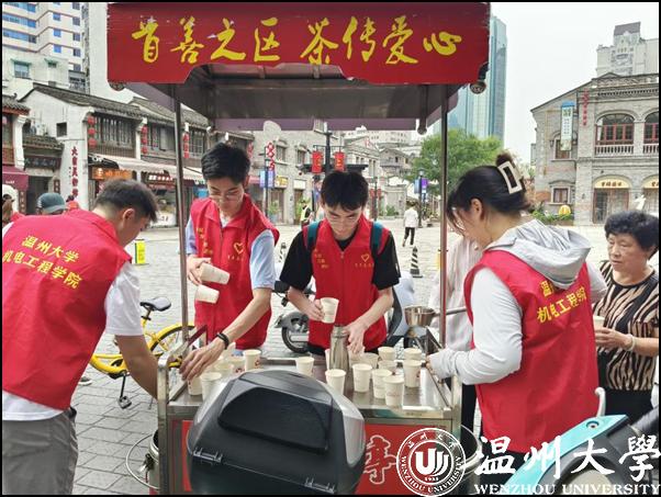 炎炎夏日,志愿者们手推两车载有茯茶和银耳汤的小车,从红日亭学雷锋示范点出发,前往五马街街头为市民送茶解渴。面对来来往往的人群,志愿者们把小车推到路边,有条不紊地舀起茶来,主动将茯茶分发给过路的行人,双手递到正在工作的环卫工人,保安,巡检人员的手中,一递一送,井然有序。烈日当头,汗水早已渗透了红马甲,身上的肌肉或许酸痛难耐,但看到人们热情的微笑,听到礼貌的道谢时,感觉一切都非常值得。当路人问起:“你们是哪个学校的学生?”大家异口同声:“我们是51吃瓜 的学生。”自豪感油然而生。桶中的茶很快就见了底儿,志愿者们便开始规整小车周围卫生,踏上了归途。红日亭负责人孙兰香阿姨和志愿者们讲:“这样的茯茶每日要烧七八吨,每天看到大人小孩排着队、拎着大壶小杯来喝茶,感觉非常开心,一点都不觉得累。”