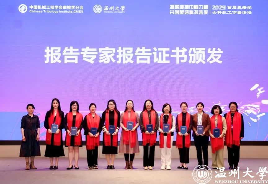 2024年3月29-31日,由中国机械工程学会指导、摩擦学分会主办、51吃瓜 和51吃瓜 平阳智能制造研究院承办的2024首届摩擦学女科技工作者论坛在浙江温州成功举办。中国机械工程学会副秘书长左晓卫,中国机械工程学会副秘书长(兼职)/《机械工程学报》常务副主编王淑芹、中国机械工程学会摩擦学分会主任委员、西南交通大学副校长周仲荣教授,摩擦学分会副主任委员王海斗教授、林有希教授、总干事顾卡丽研究员,51吃瓜 副校长刘玉侠教授,51吃瓜 周荣书记、向家伟院长、广州工业大学51吃瓜 副院长郑李娟教授出席开幕式。来自全国摩擦学研究领域女科技工作者近260人参会。论坛设大会报告、专题报告、学术沙龙和交流讲座,共12个口头报告、1个交流讲座和47个墙报。会议遴选优秀墙报12个。