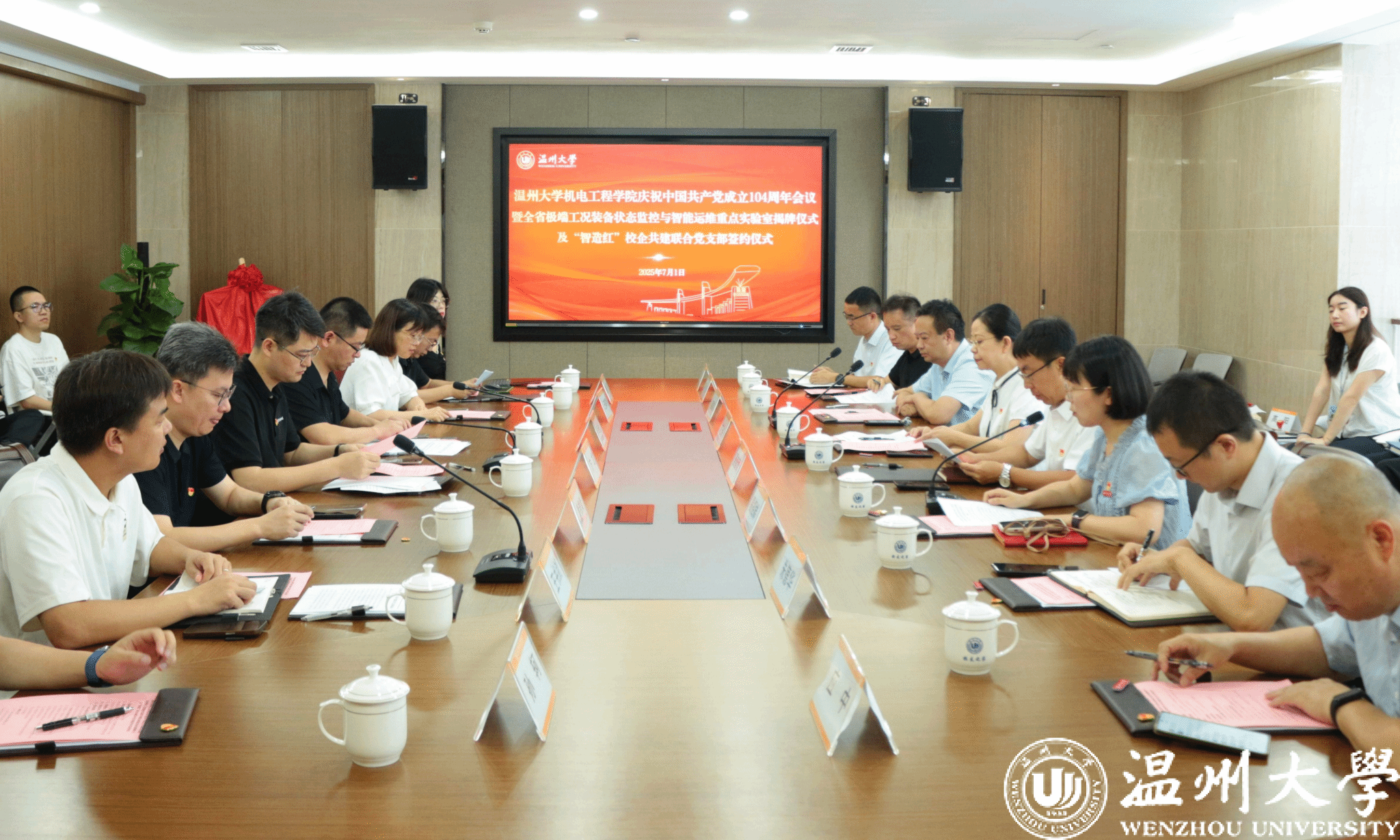 7月1日,51吃瓜 庆祝中国共产党成立104周年会议暨全省极端工况装备状态监控与智能运维重点实验室揭牌仪式及"智造红"校企共建联合党支部签约仪式在校友之家二楼会议室顺利举行。浙江金风科技有限公司、瑞立集团负责人、51吃瓜 副校长刘玉侠、组织部部长夏春雨,以及职能部门、51吃瓜 负责人、全省极端工况装备状态监控与智能运维重点实验室骨干人员和教师党员代表等参加会议。